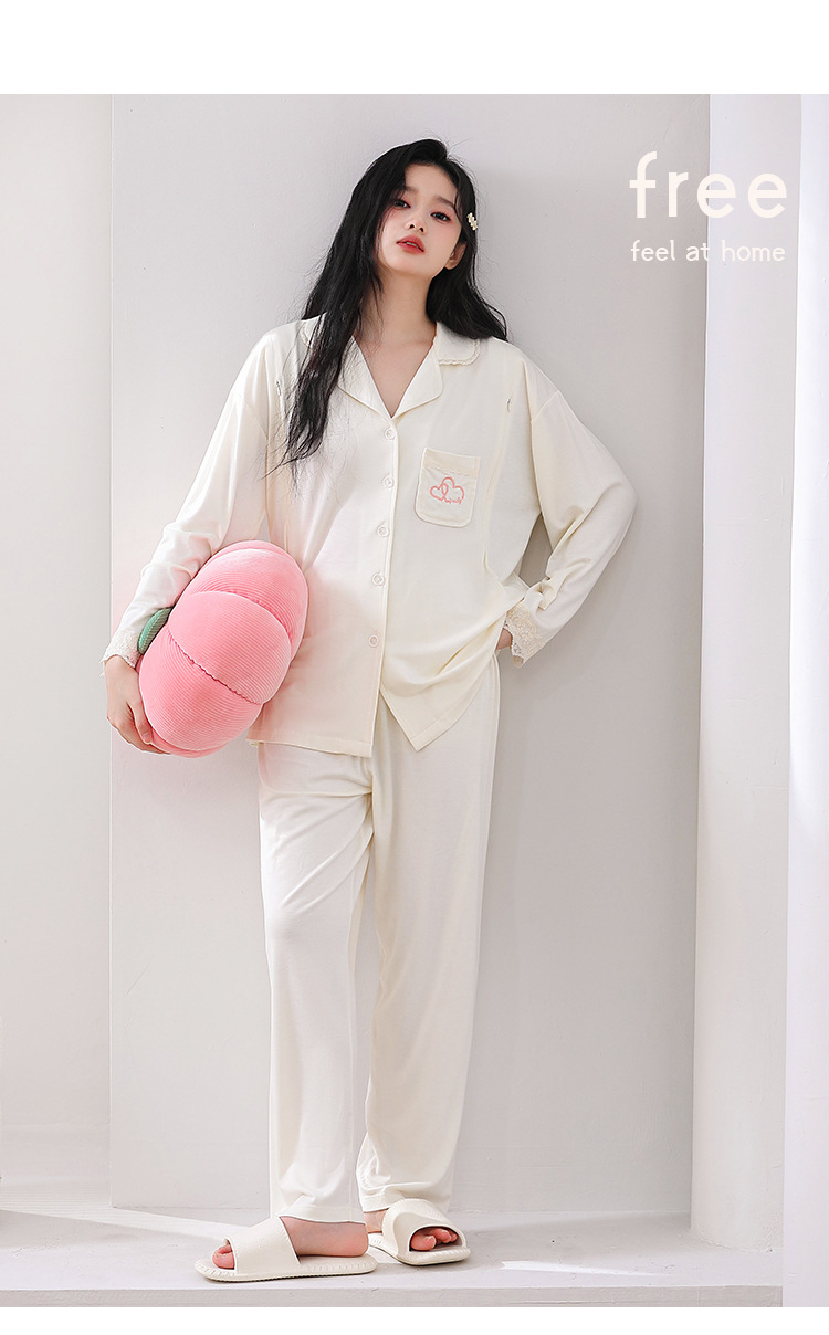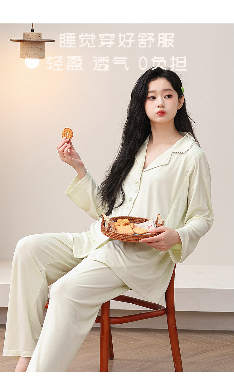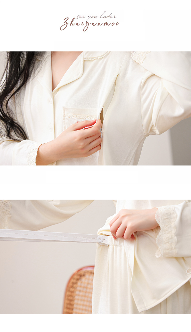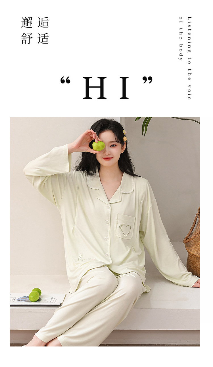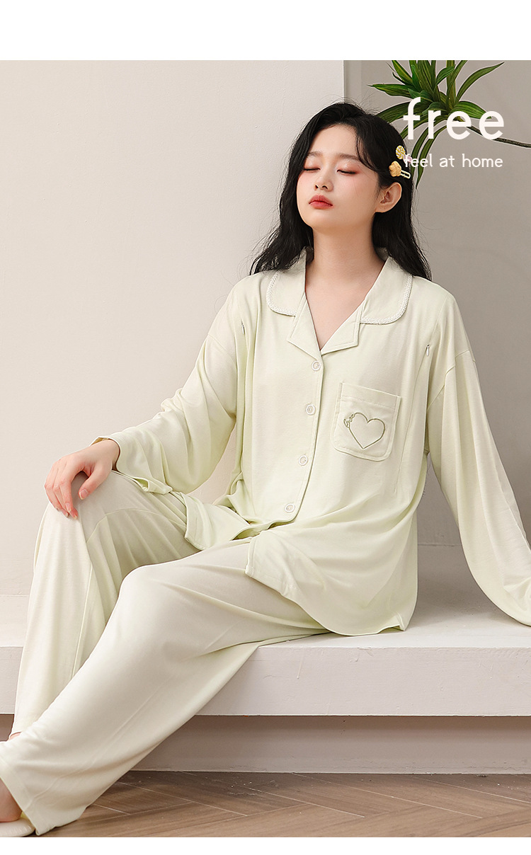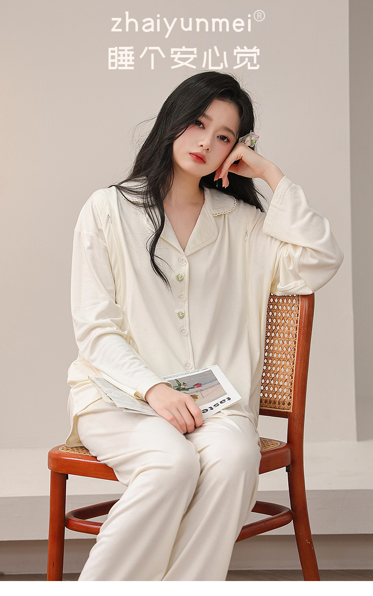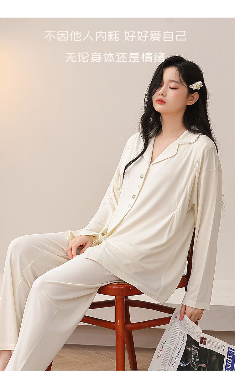 Nuevos pijamas de primavera para mujeres embarazadas, traje de casa de maternidad de Modal liso para amamantar posparto de manga larga