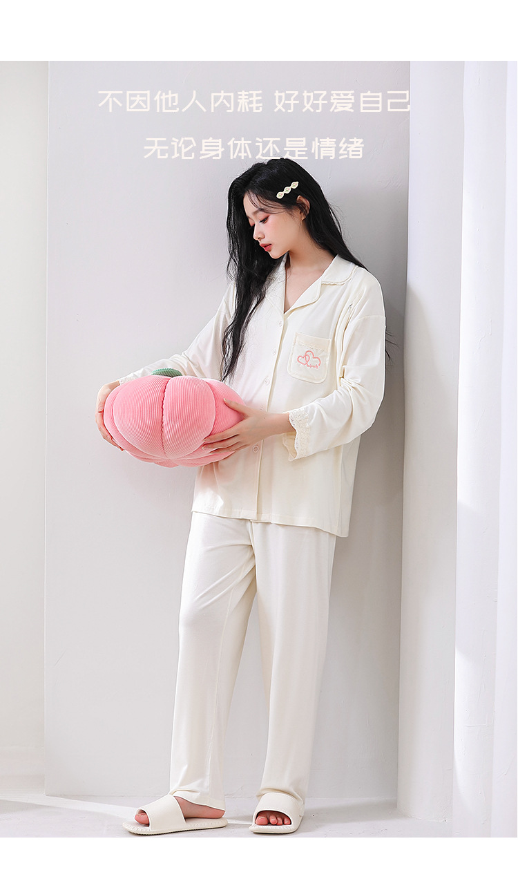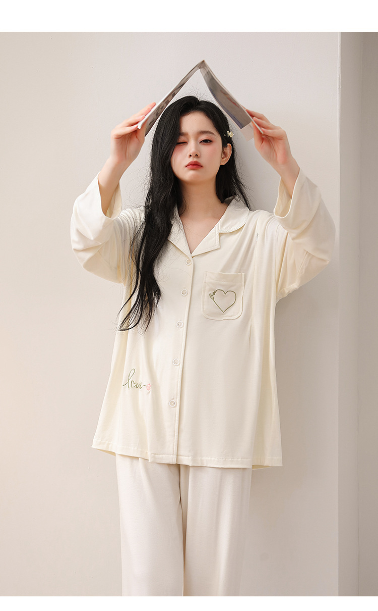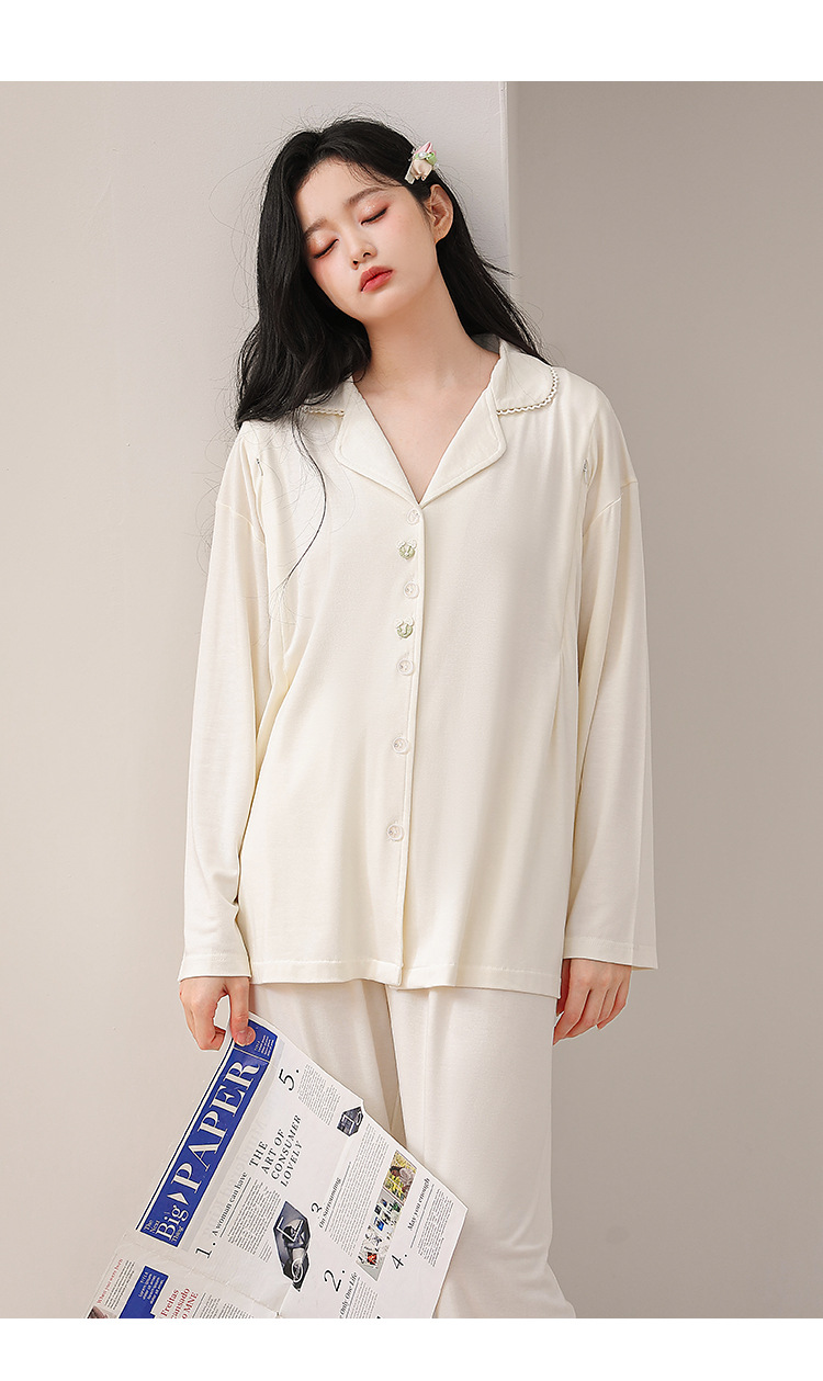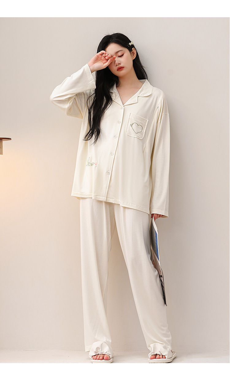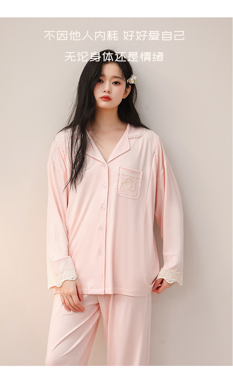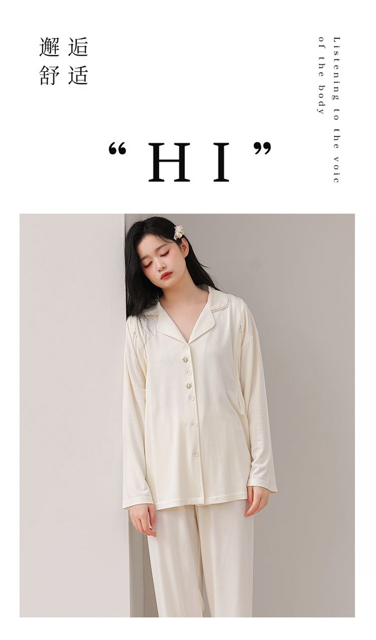 Nuevos pijamas de primavera para mujeres embarazadas, traje de casa de maternidad de Modal liso para amamantar posparto de manga larga
