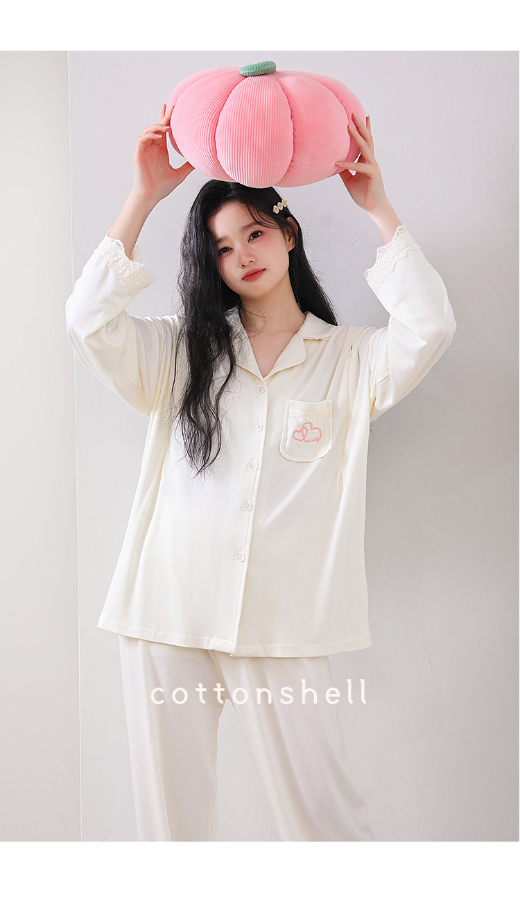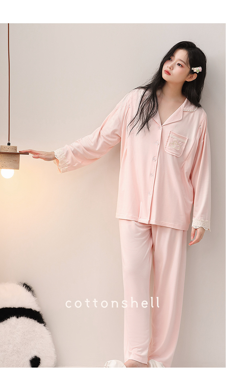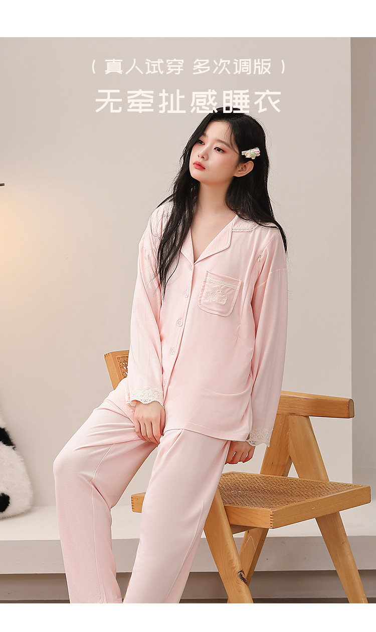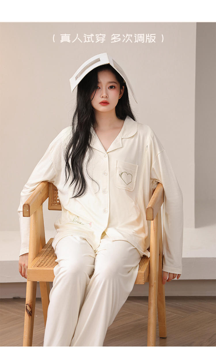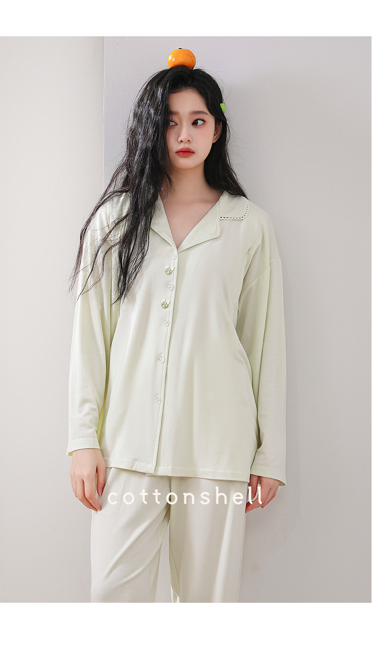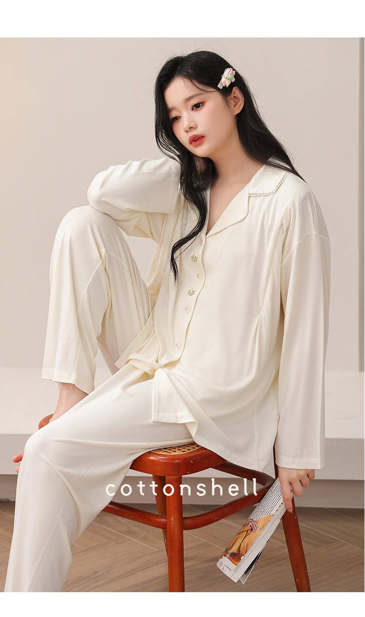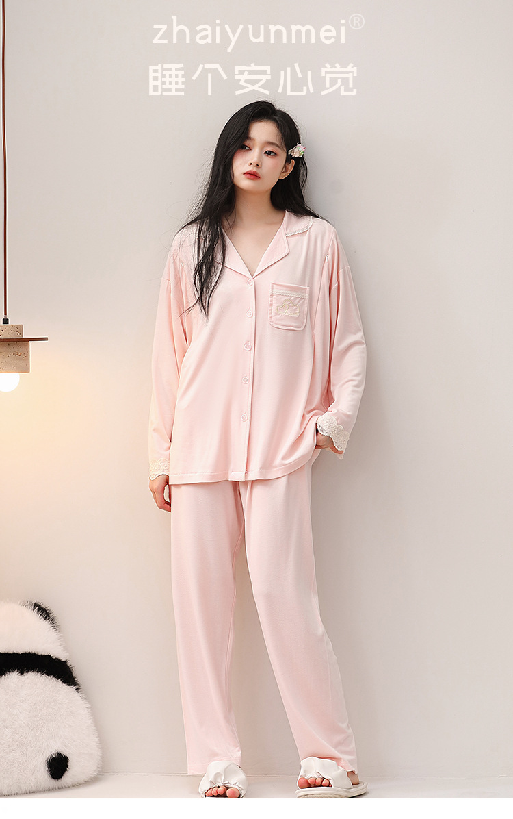 Nuevos pijamas de primavera para mujeres embarazadas, traje de casa de maternidad de Modal liso para amamantar posparto de manga larga