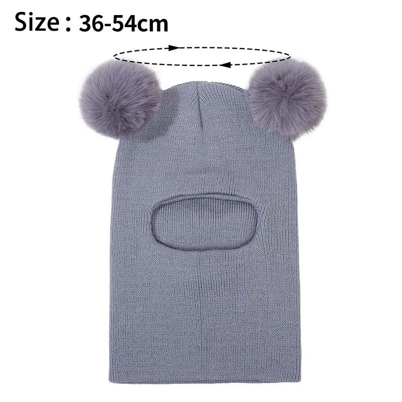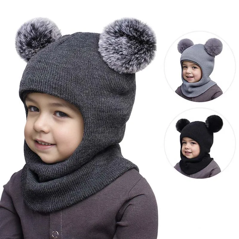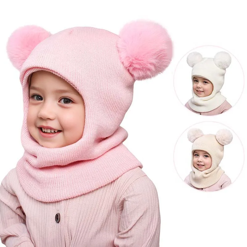 Nuevos sombreros para niños, bufanda de una pieza, bonito gorro tejido con pompón para bebé, gorros cálidos de invierno con protección para los oídos, accesorios para la cabeza para niños a la moda