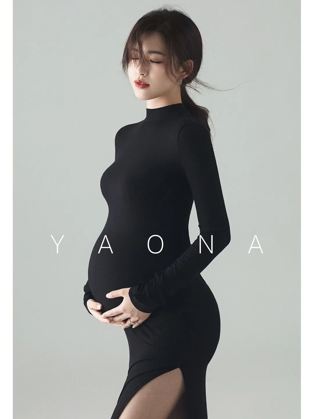 Nuevos vestidos de maternidad sexis negros, accesorios de fotografía, ropa larga de embarazo lateral dividida, sesión de fotos para mujeres embarazadas, vestido 2021