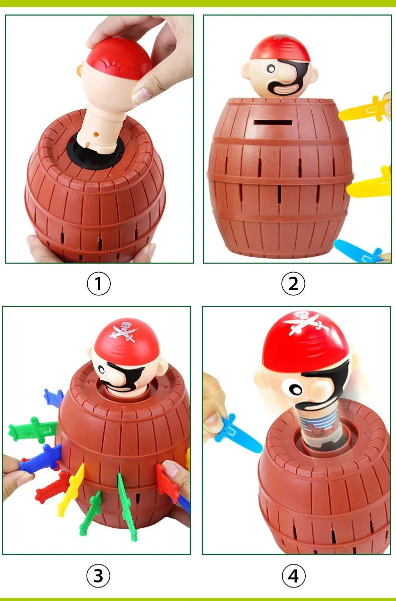 Nuevos divertidos juguetes de barril pirata juego de la suerte saltar piratas cubo espada apuñala juguete complicado bromas familiares para niños regalo para niños