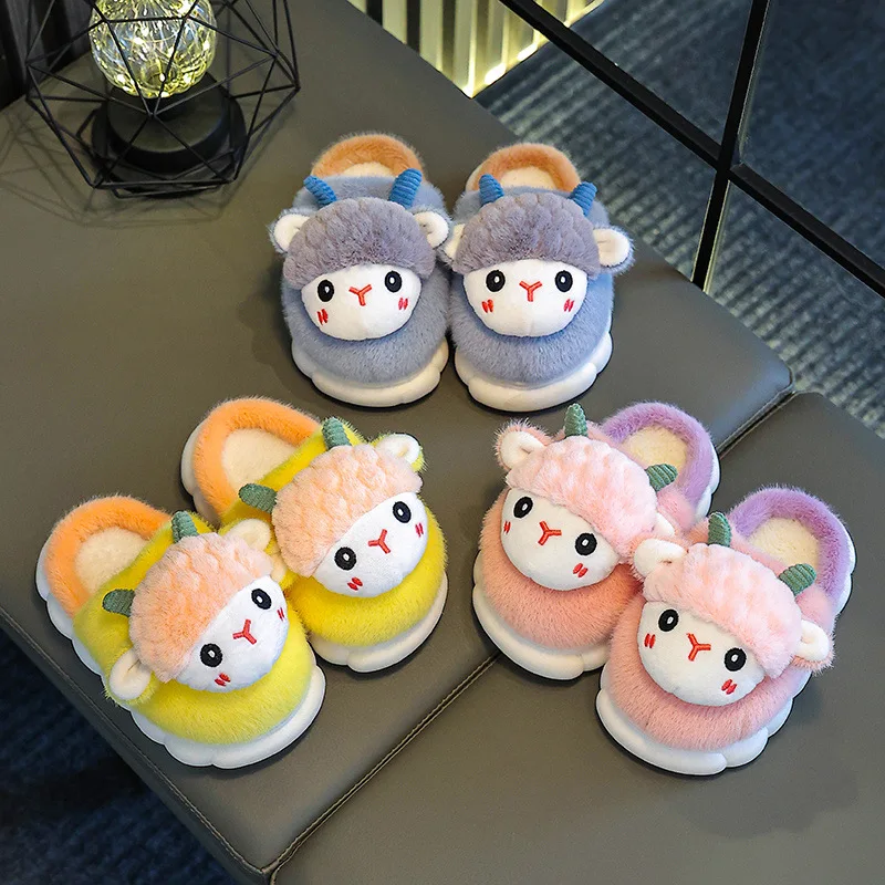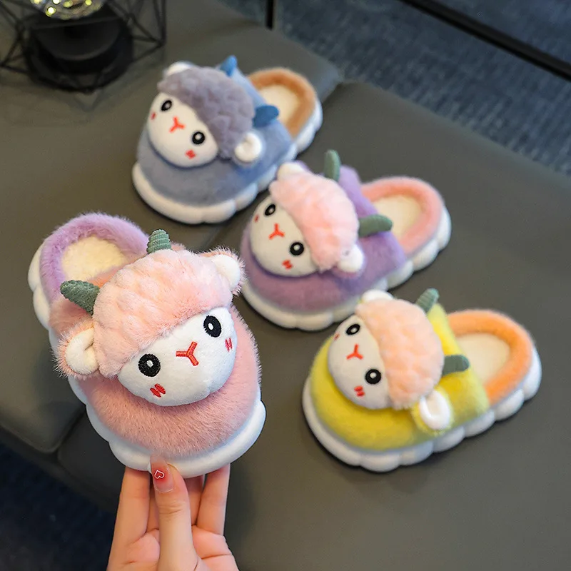 Comprar Nuevos Zapatos de algodón para niños, Zapatos bonitos de dibujos animados para niñas, Zapatos cálidos antideslizantes para interiores, Zapatillas ligeras de algodón para el hogar, Zapatos Niña