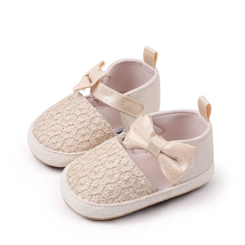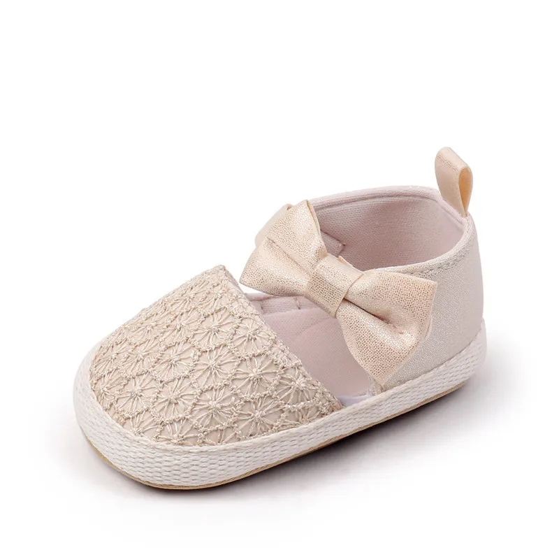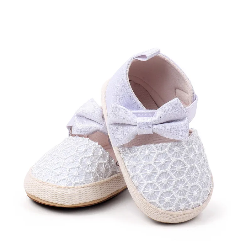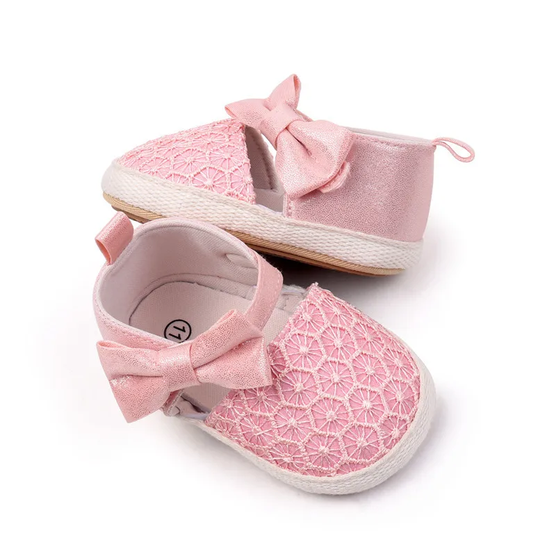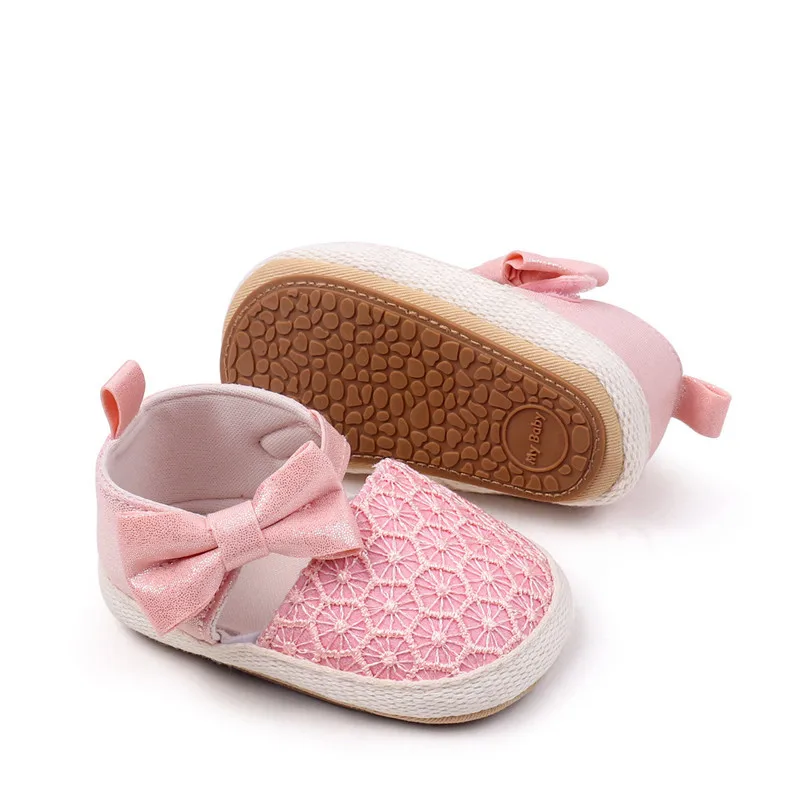 Nuevos zapatos de bebé, bonitos zapatos de cuna para bebés con lazo, suela de goma suave, primeros caminantes para niñas recién nacidas