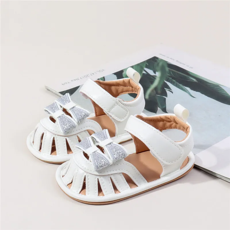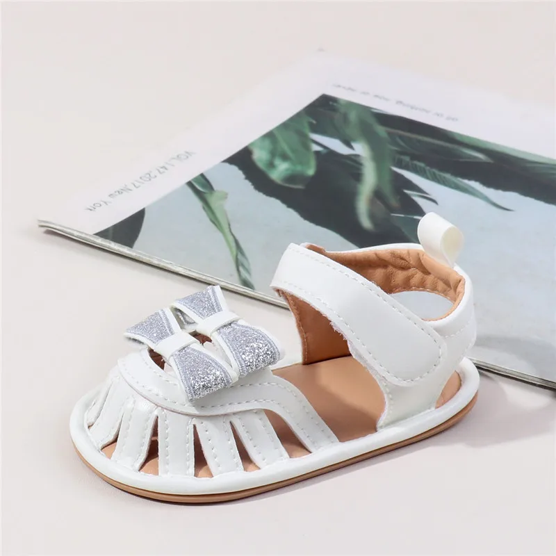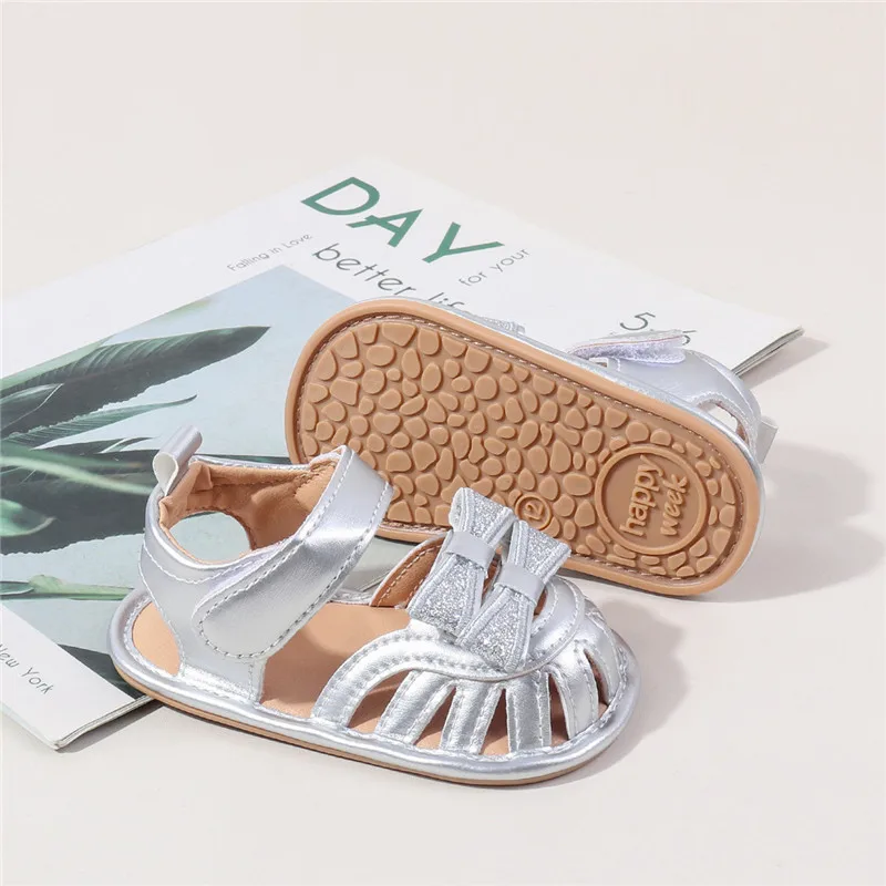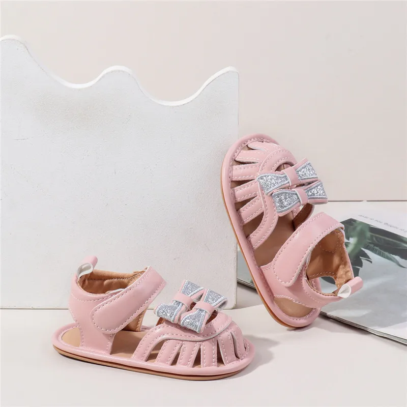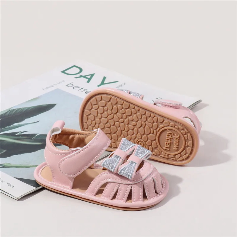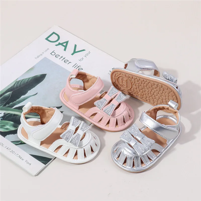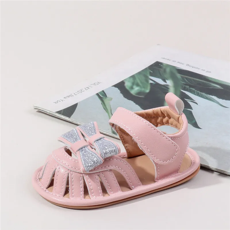 Nuevos zapatos de bebé moda verano infantil suela de goma sandalias antideslizantes lindo lazo niño niñas cuna primeros caminantes