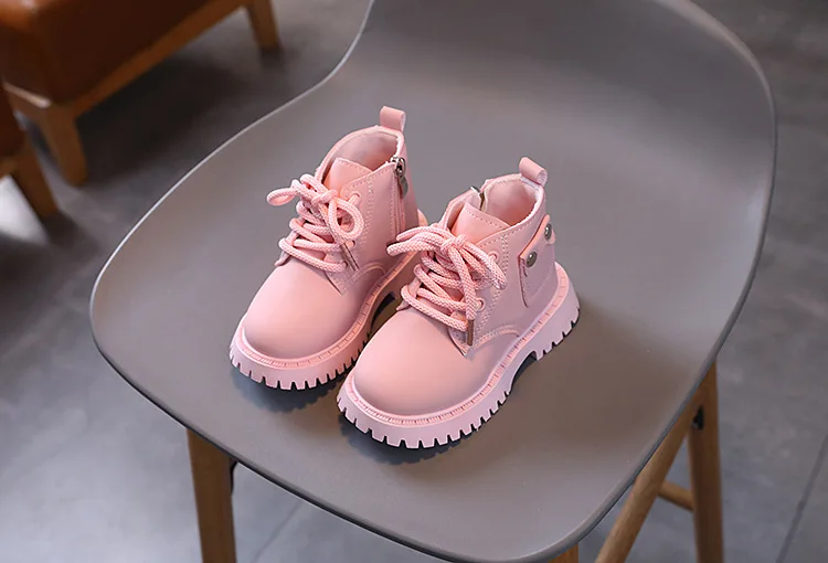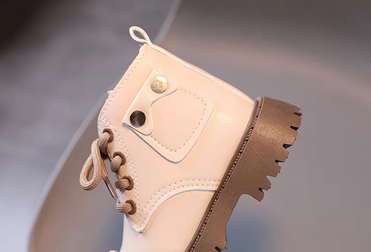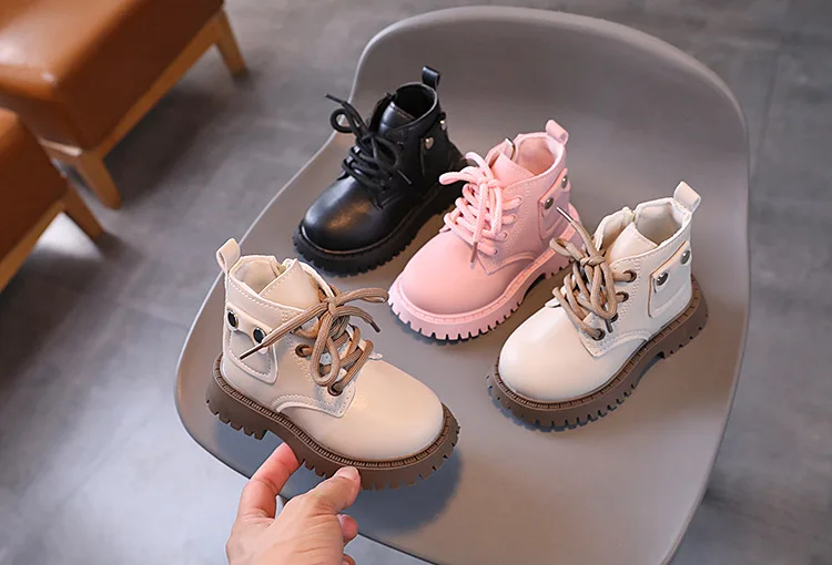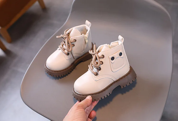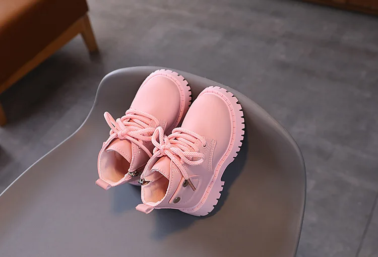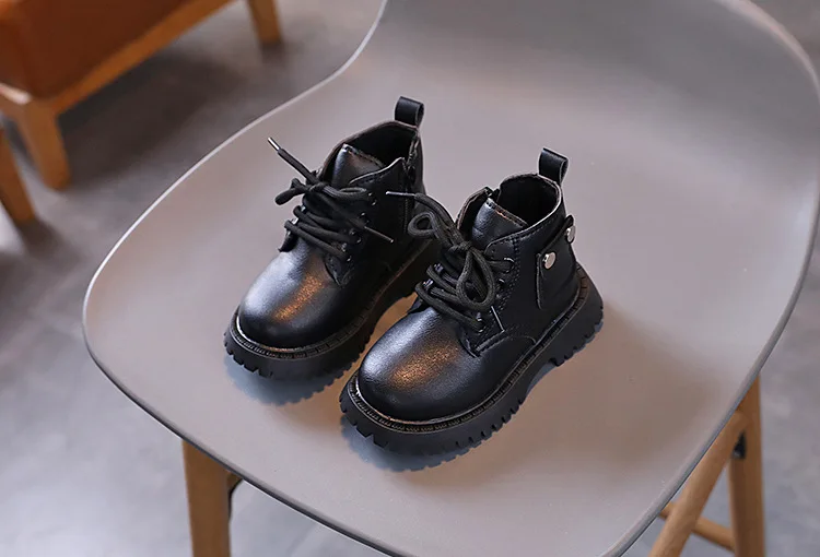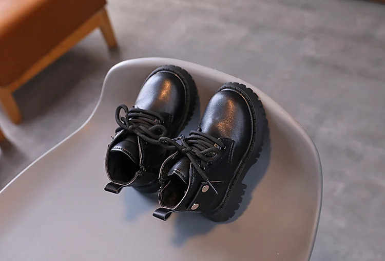 Nuevos zapatos informales de invierno para niños, botas Martin impermeables de cuero, botas Martin cálidas de felpa antideslizantes a la moda para niños