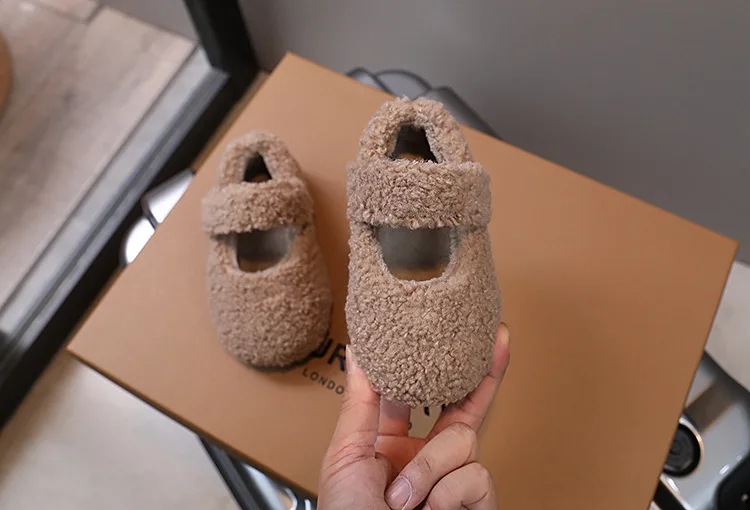 Comprar Nuevos zapatos planos de invierno para niños, calzado informal ligero y cálido con cubierta de piel para dedos del pie, zapatos de ocio antideslizantes cálidos de felpa para niños y niñas 2024