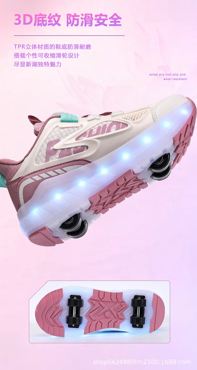 {"tipo de estilo": "tipo de oferta-1", "artículos": "831261534954,730022991004,738410302958,735844718420,810417010644,729846558783", "usemap": "_sdmap_33"Comprar Nuevos zapatos Runaway para niñas 2025, zapatos con ruedas de verano para niños con carga USB resbaladizos y cuatro ruedas