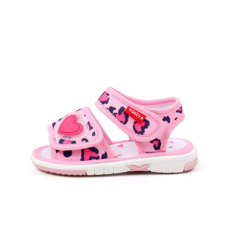 Zapatos de verano para niños, sandalias transpirables con forma de corazón bonito para bebés, primeros caminantes de lona, zapatos informales para niñas