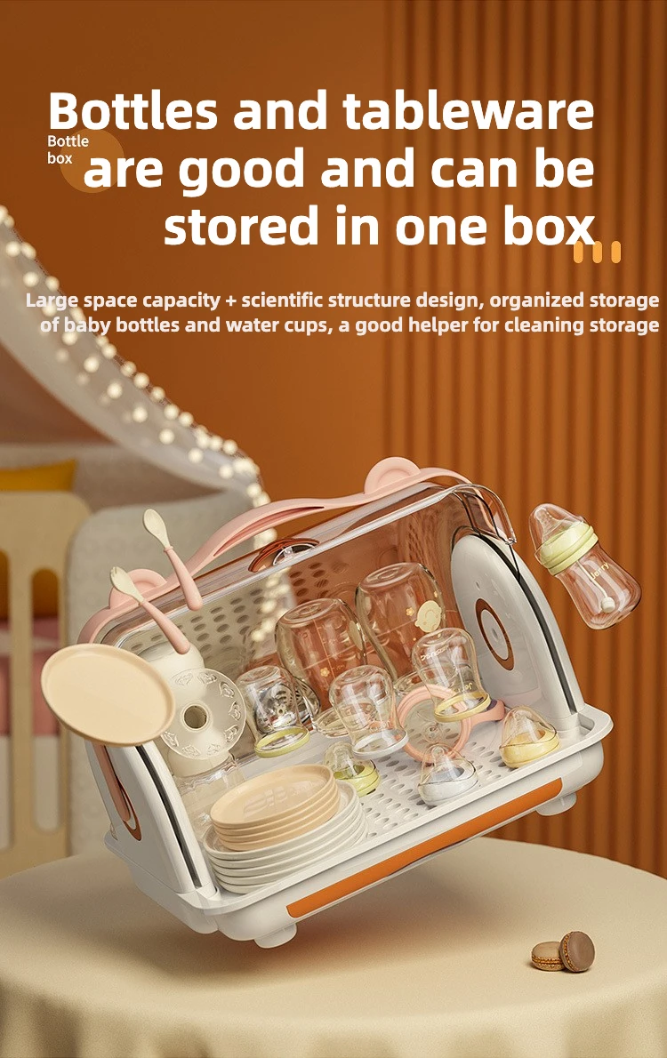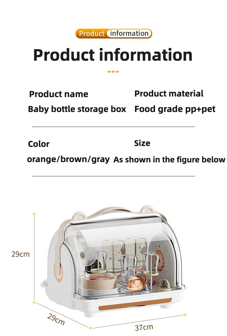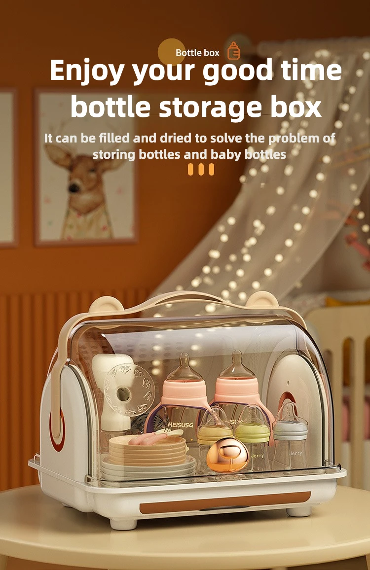 Organizador de biberones de calidad alimentaria, caja de almacenamiento de 6 botellas con tapa de bloqueo, dispensador de enfermería y fórmula para encimera/frigorífico