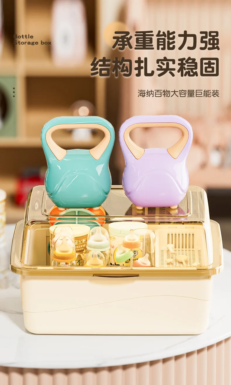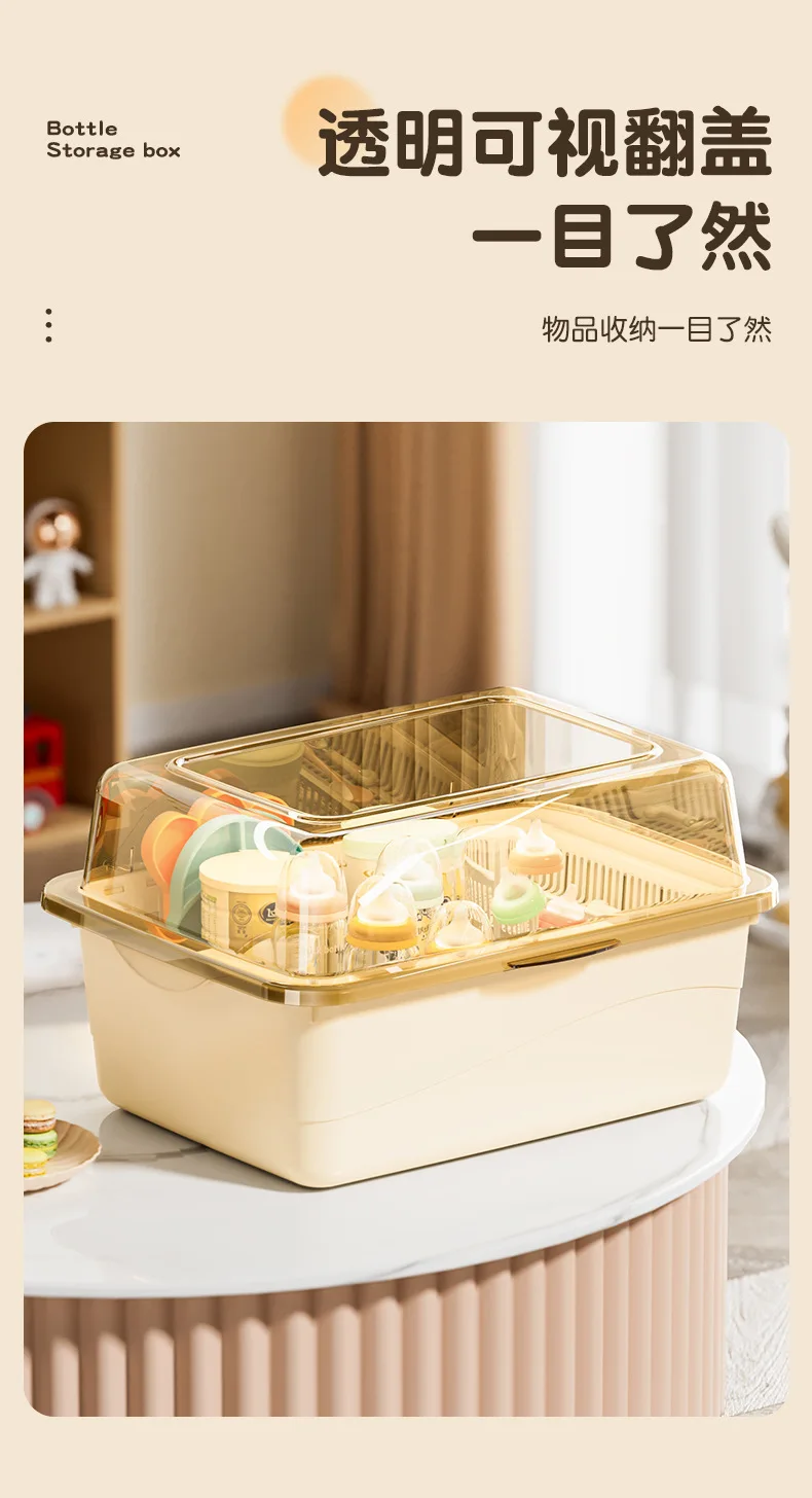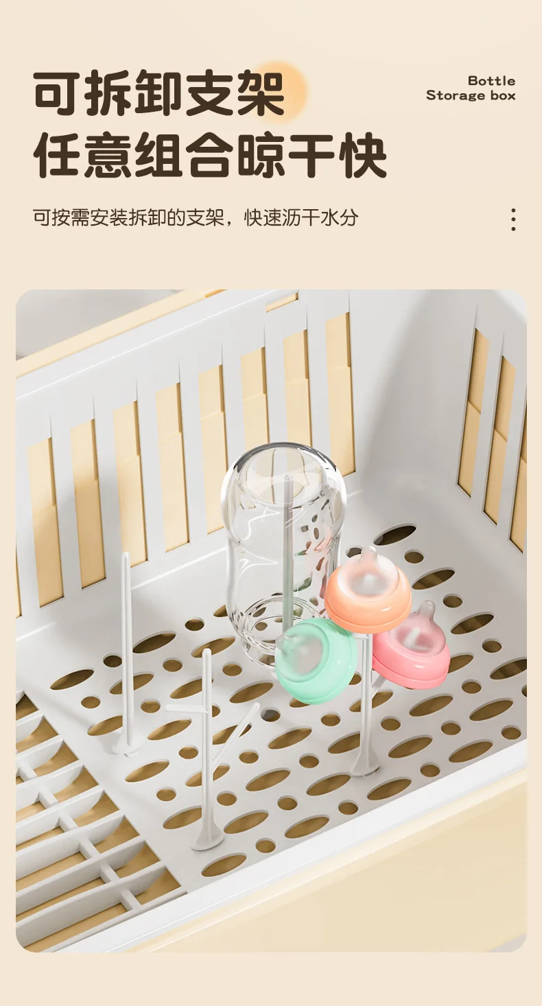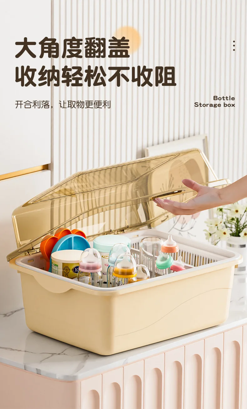 Organizador de biberones con tapa, escurridor a prueba de polvo y humedad, cesta extraíble, taza separada, almacenamiento de gran capacidad