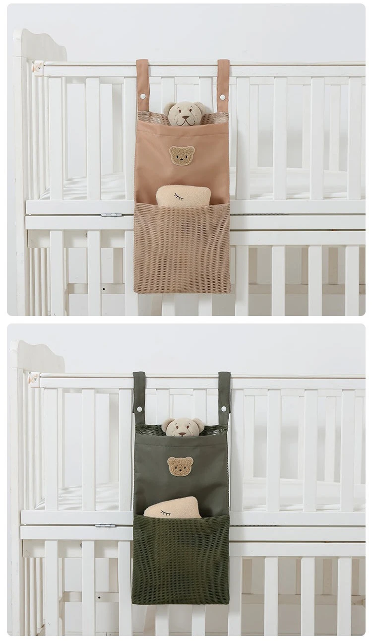 Organizador de cabecera de malla transpirable, bolsa de almacenamiento multibolsillo para bebé con diseño ventilado, organizador colgante Universal para parque infantil de cuna
