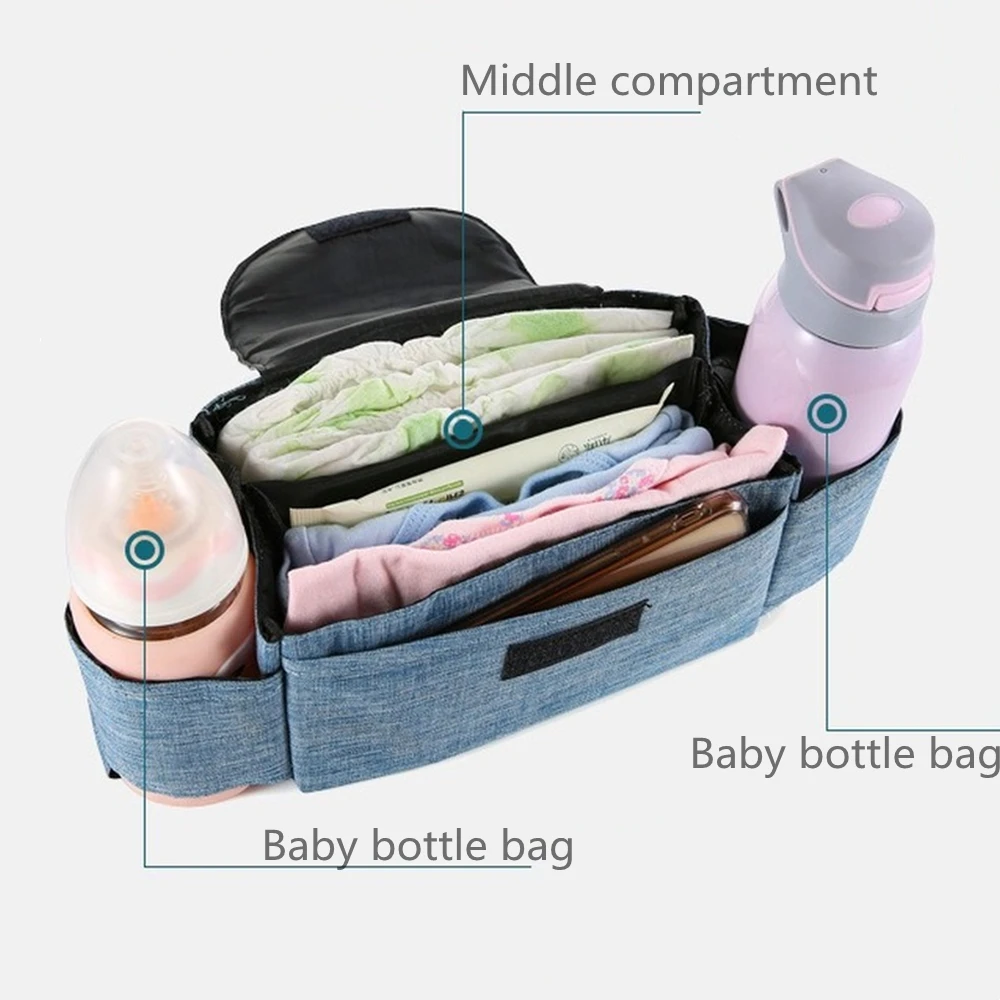 Comprar Organizador de cochecito de bebé, soporte para taza, bolsa de coche de bebé, bolsa de carro de gran capacidad, accesorios de cochecito de bebé de viaje