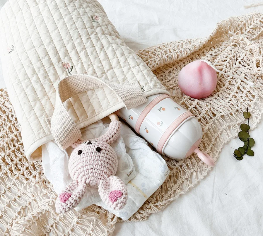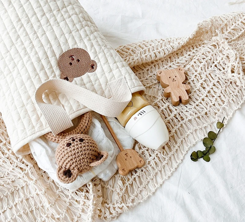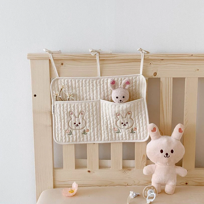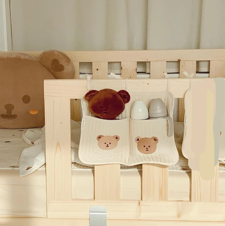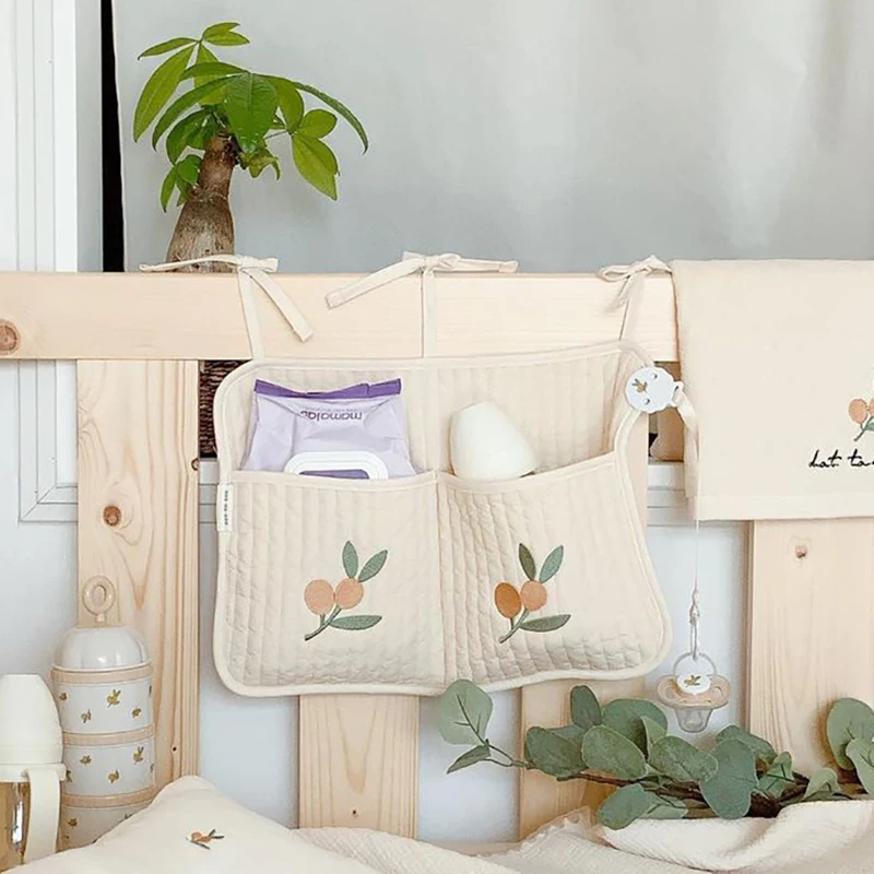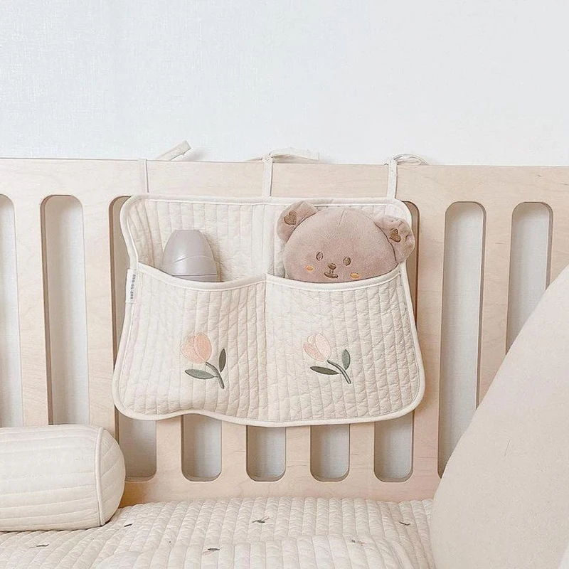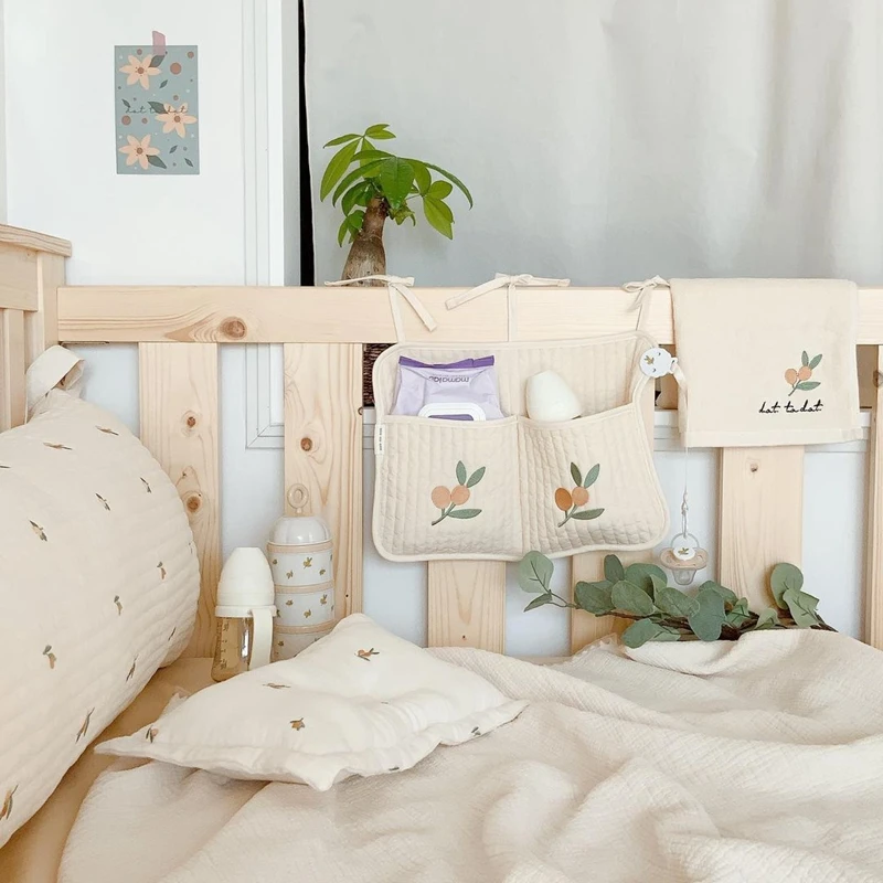 Organizador de cuna para bebé, bolsas de almacenamiento, almacenamiento de cama de algodón Newbron, bolsa de pañales, organizador Caddy, bolsas colgantes para juego de cama infantil