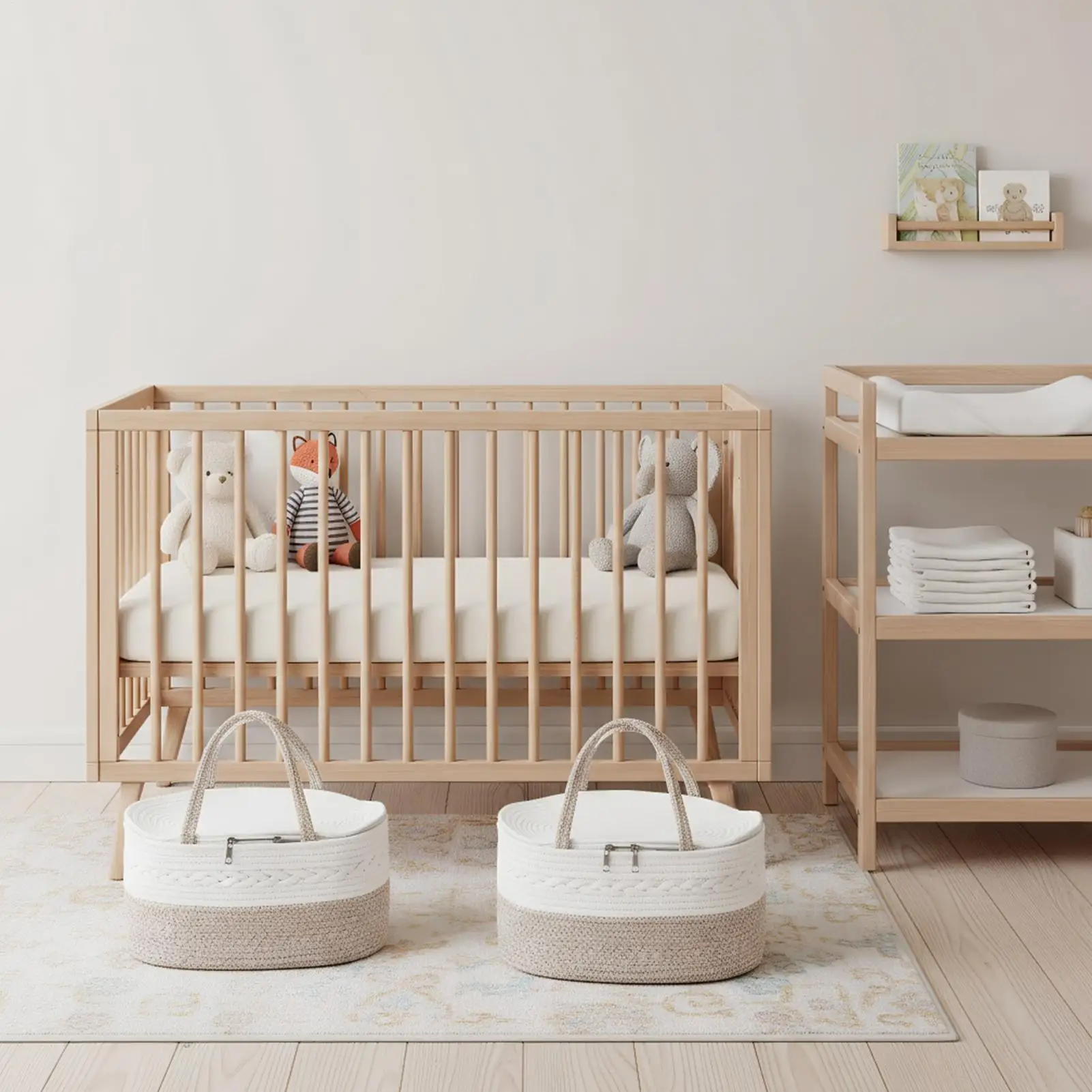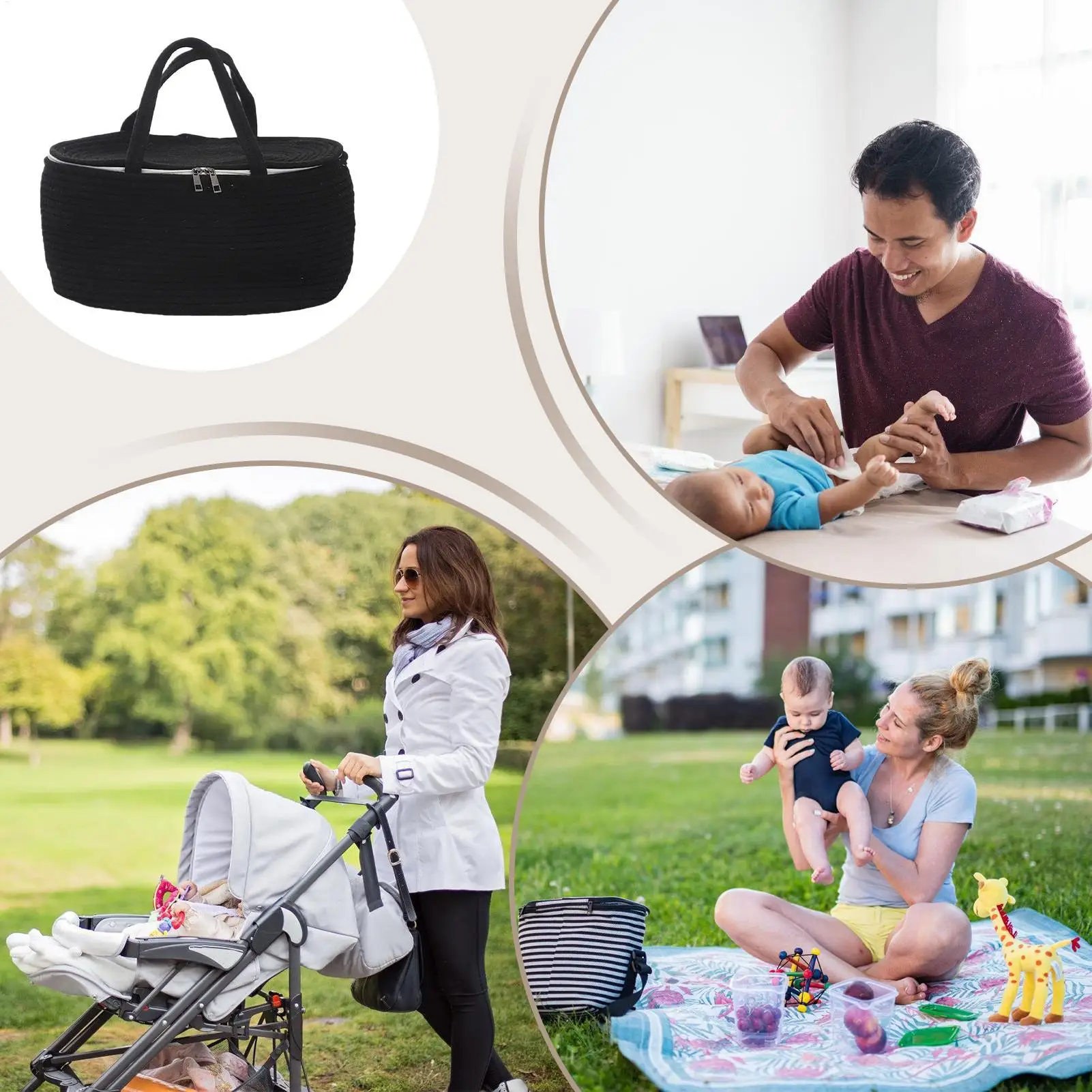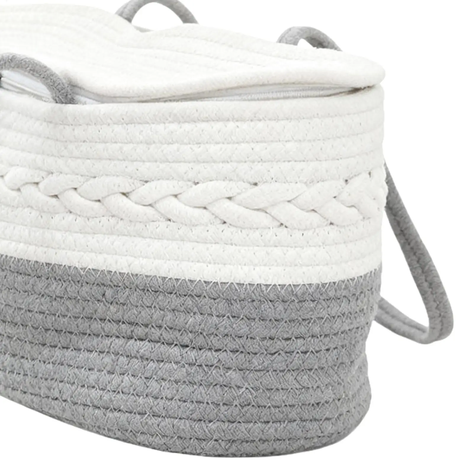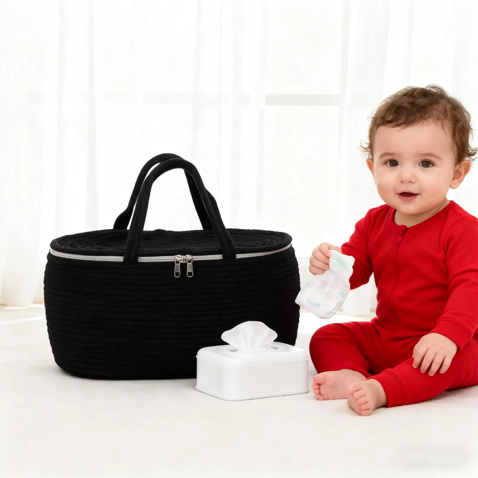 3.Ampliamente aplicable: con un diseño de doble propósito, el organizador de pañales para bebés se transforma en un elegante bolso de mano para juguetes o artículos de viaje, ofreciendo a los padres una versatilidad confiable gracias a su resistente construcción de cuerda de algodón que respalda el uso diario y los requisitos de evolución.