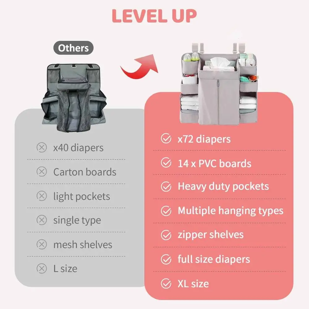 Multi-Hanging Organizer: With 2 C-clips 2 extra adjustable straps, it can be a changing table organizer, playard nursery organizer, crib diaper organizer, it can be installed wherever you need and you can use it at anytime.