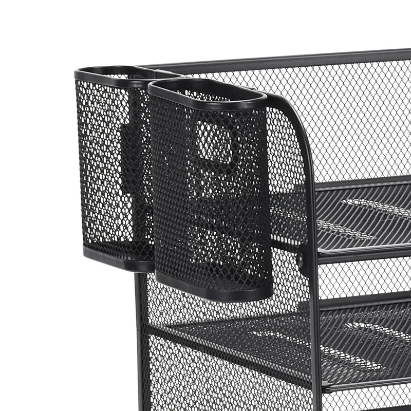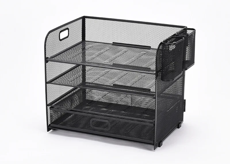 Organizador de portalápices de malla metálica resistente con almacenamiento de varios niveles de 2 piezas - Organizador de escritorio que ahorra espacio