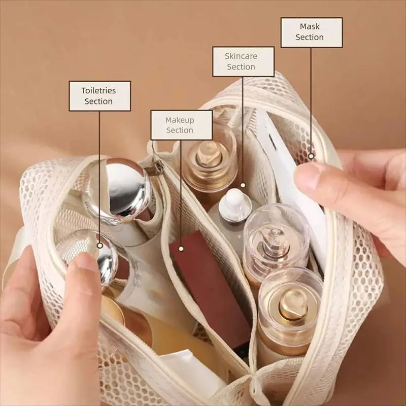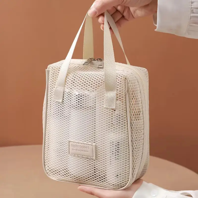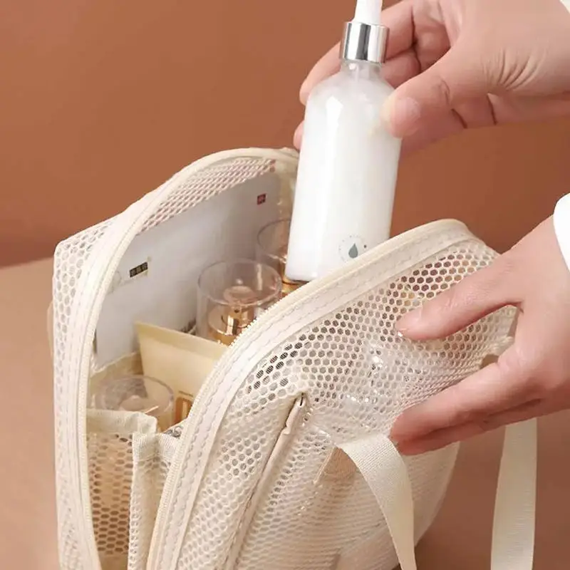 Comprar Organizador portátil de herramientas de ducha corporal para lavado de viaje, organizador colgante de cosméticos, bolsa de malla para maquillaje, bolsas de almacenamiento de artículos de tocador, bolsos
