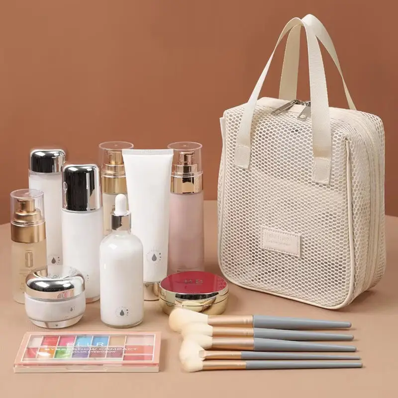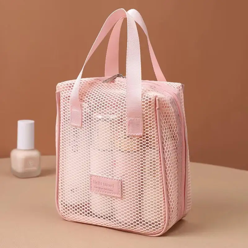 Comprar Organizador portátil de herramientas de ducha corporal para lavado de viaje, organizador colgante de cosméticos, bolsa de malla para maquillaje, bolsas de almacenamiento de artículos de tocador, bolsos