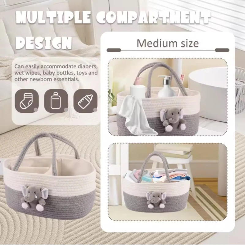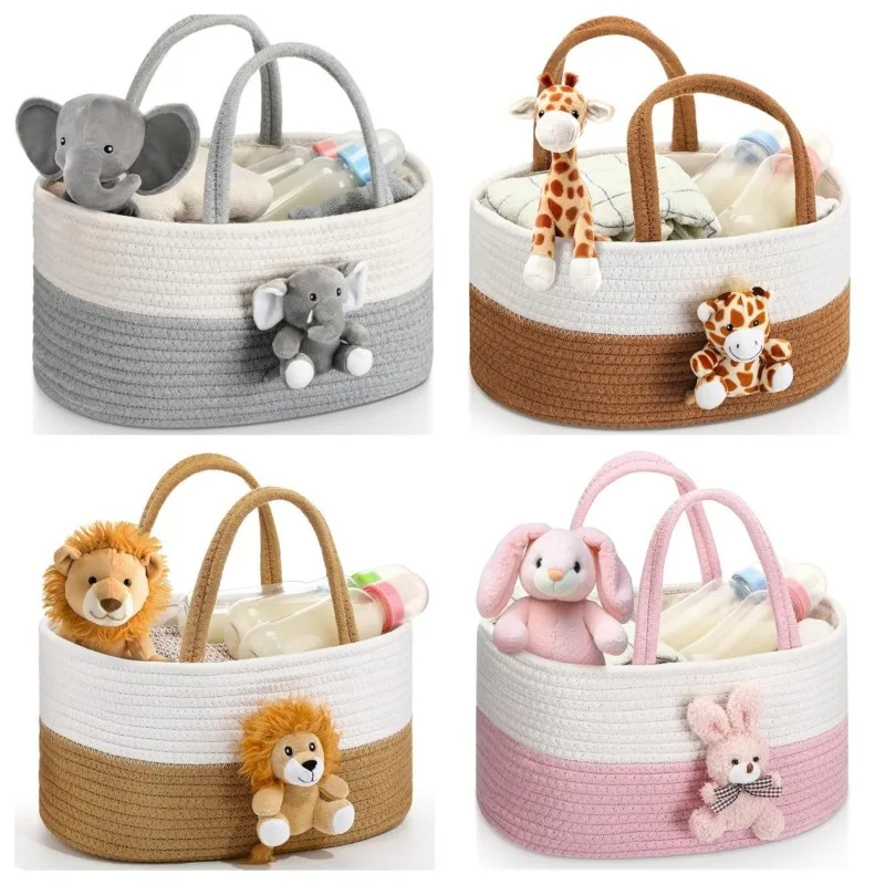 Organizador portátil para pañales, cesta de almacenamiento de cuerda de algodón de gran capacidad con asa, bolsa de viaje para cambiar pañales de bebé