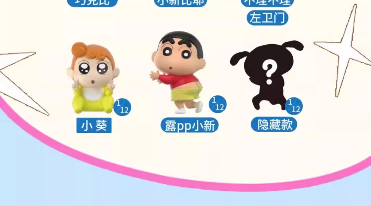 Hay un total de 12 productos en esta serie, incluidos 11 normales y 1 oculto.Seleccione aleatoriamente uno de ellos y la probabilidad de obtener cada producto es 1/12.