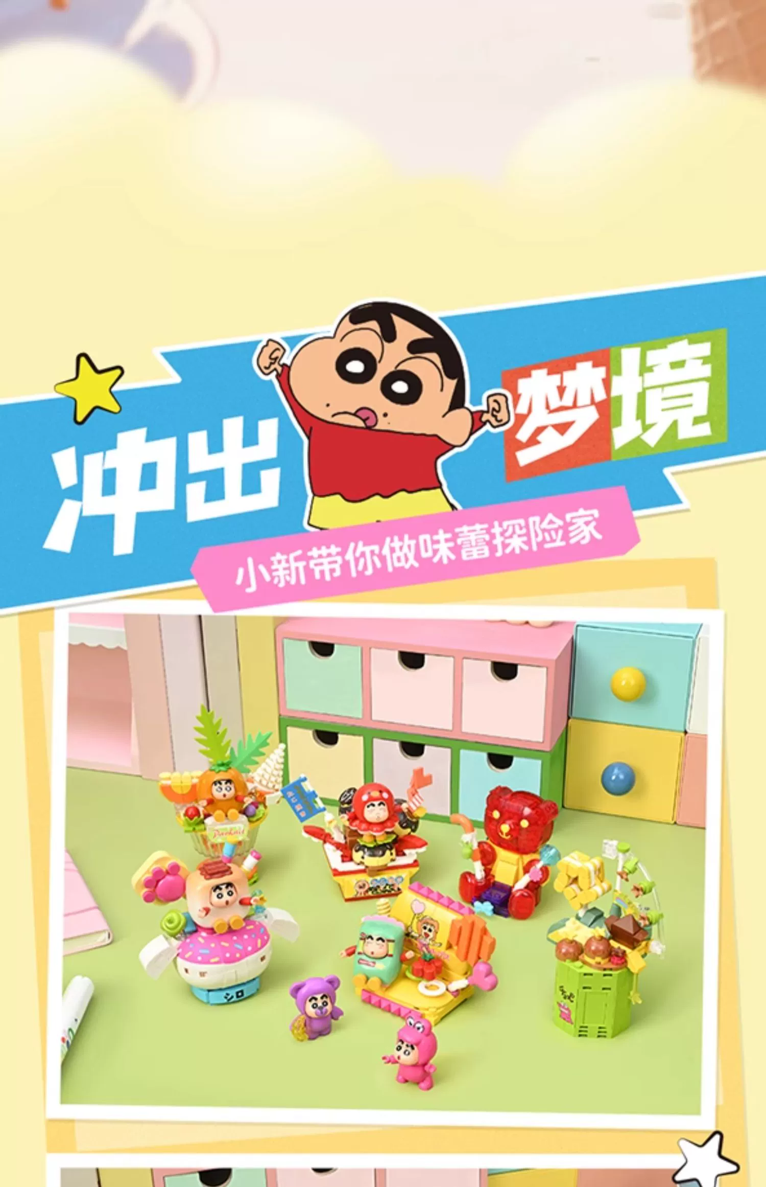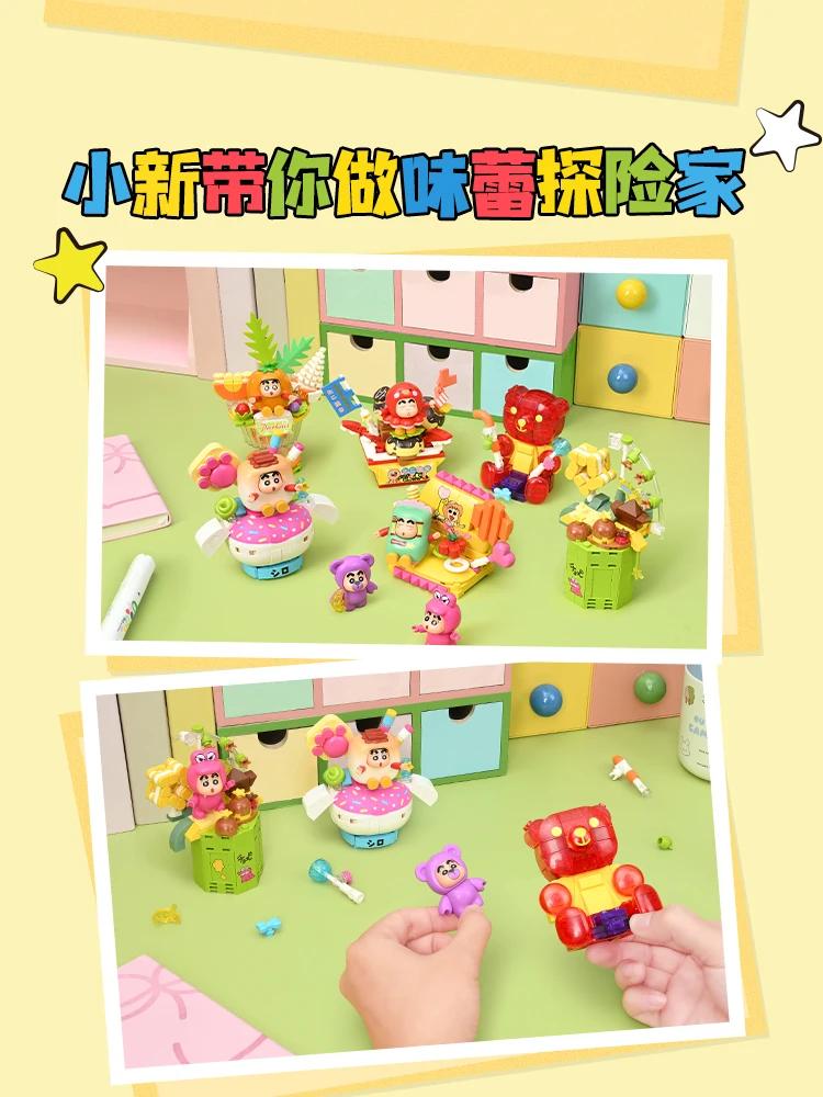 Original maravilloso Keeppley montaje bloque de construcción Shin-chan Eat Well serie juguetes personajes de dibujos animados ornamento regalo para niños