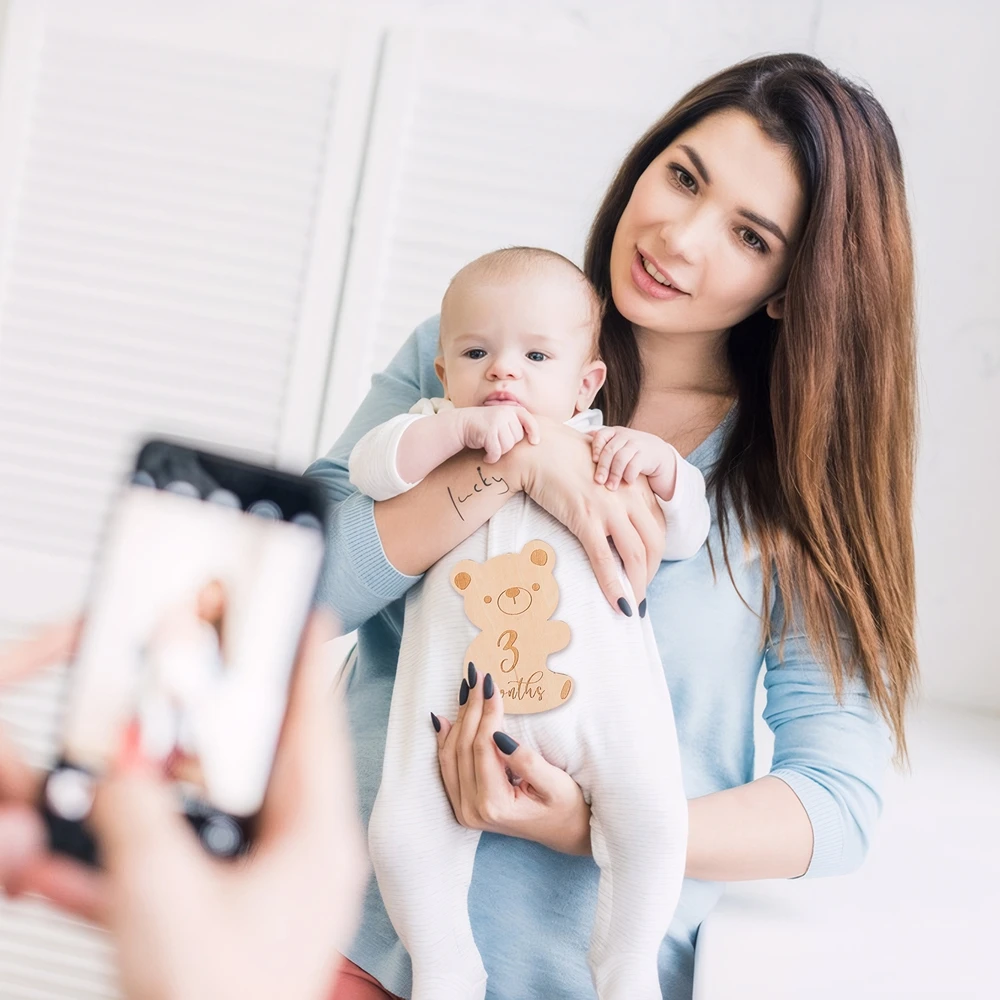 Oso de dibujos animados para bebé, tarjetas de hito de 1 a 12 meses, accesorios de fotografía de madera para recién nacidos, regalo de recuerdo de crecimiento para niños