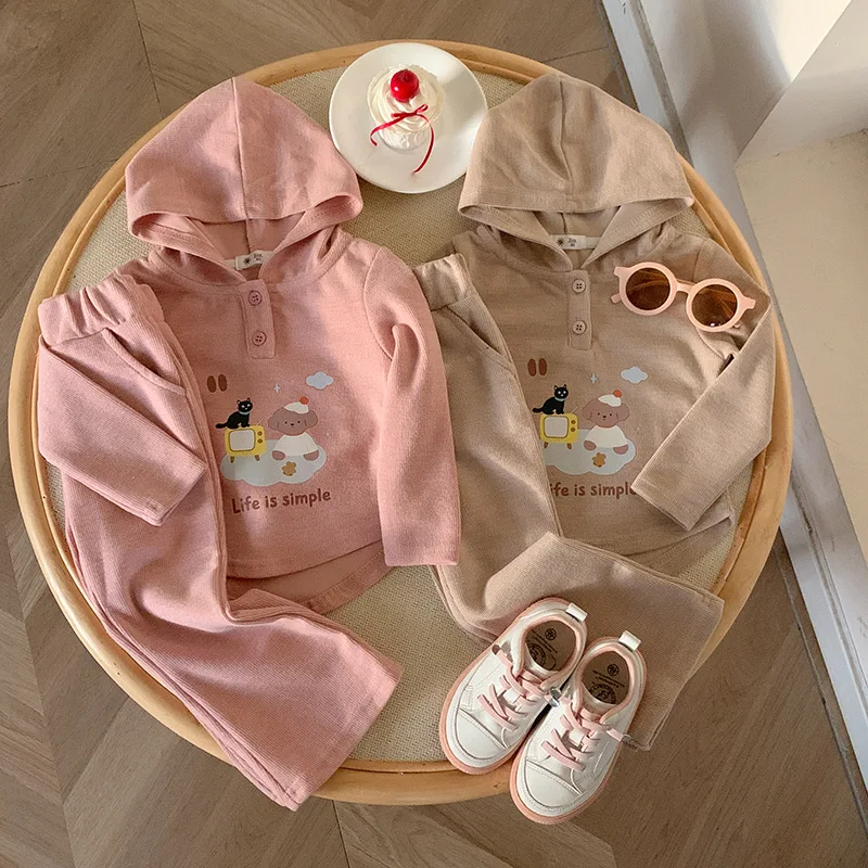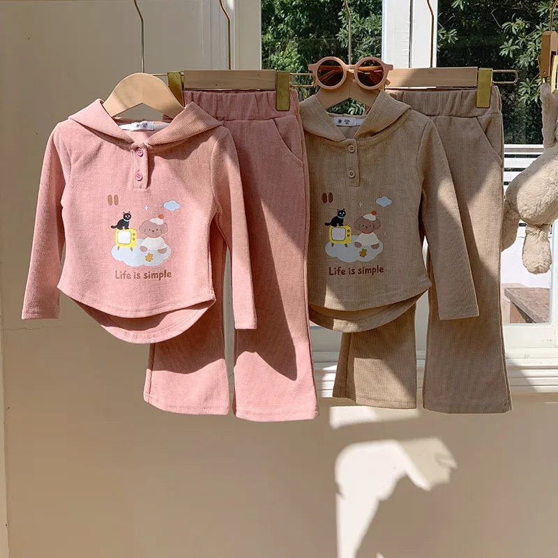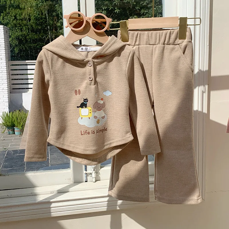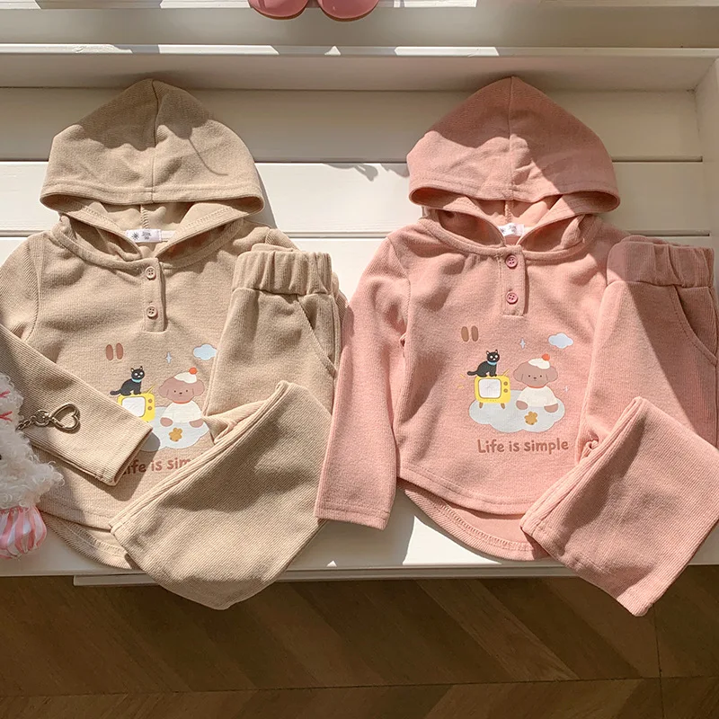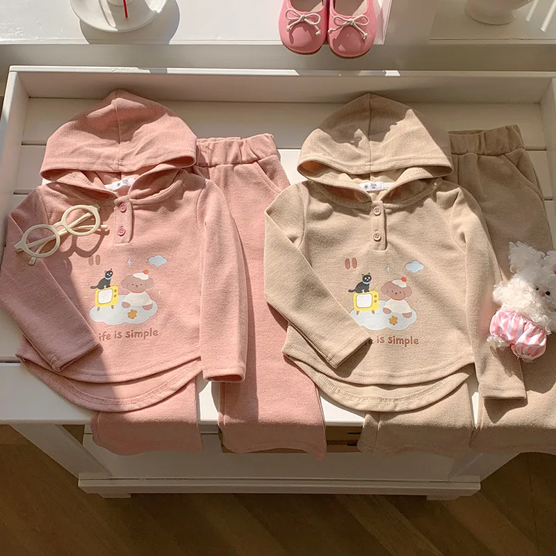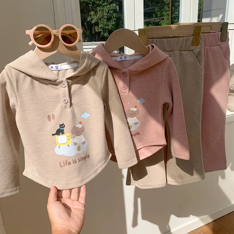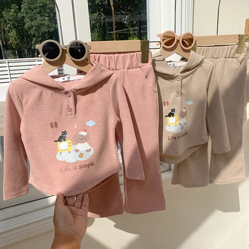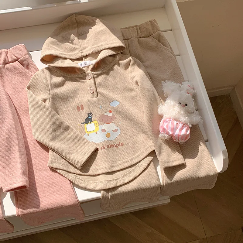 Comprar Otoño de dibujos animados Casual niños conjunto ropa de bebé Sudadera con capucha de manga larga + Pantalones 2 unids/set traje de niños