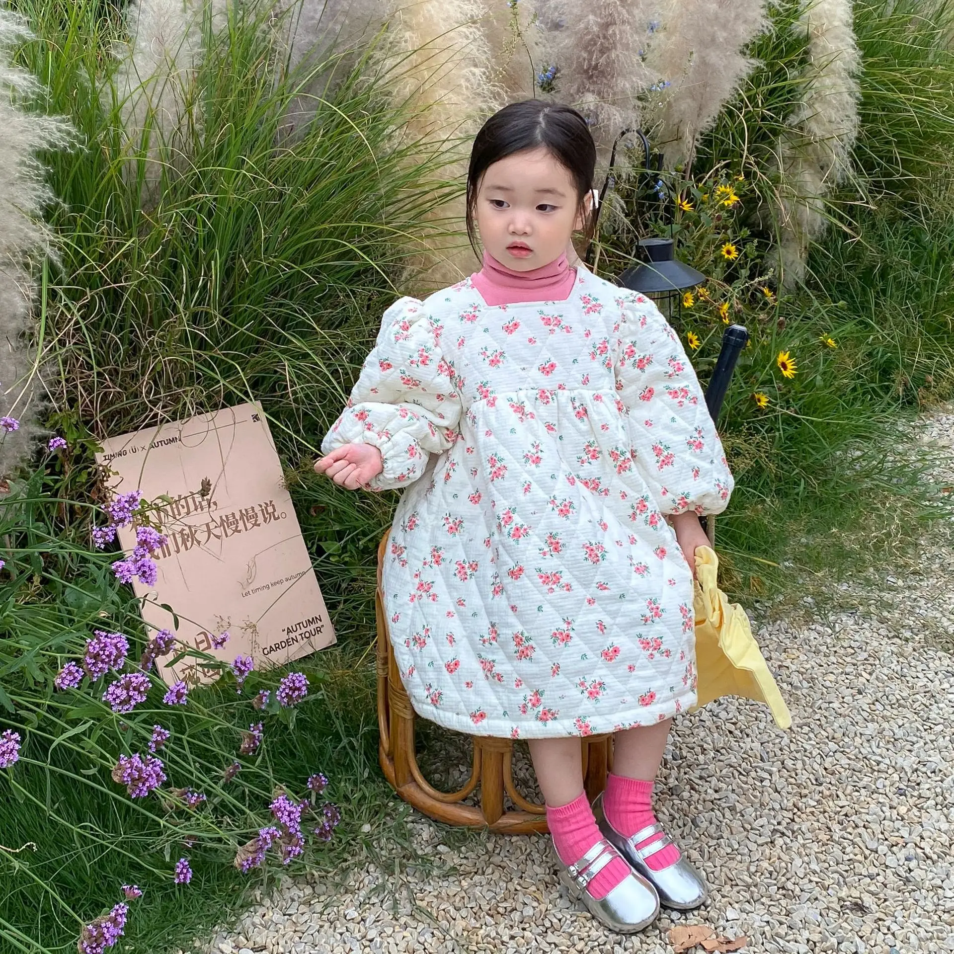 Comprar Otoño e Invierno 2022 nueva ropa coreana para niños edición coreana encantadora Chaqueta de algodón cálida Vestido de manga larga para niña