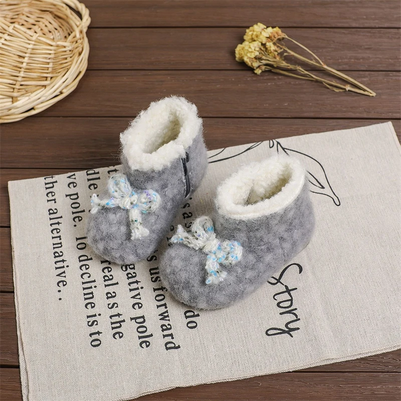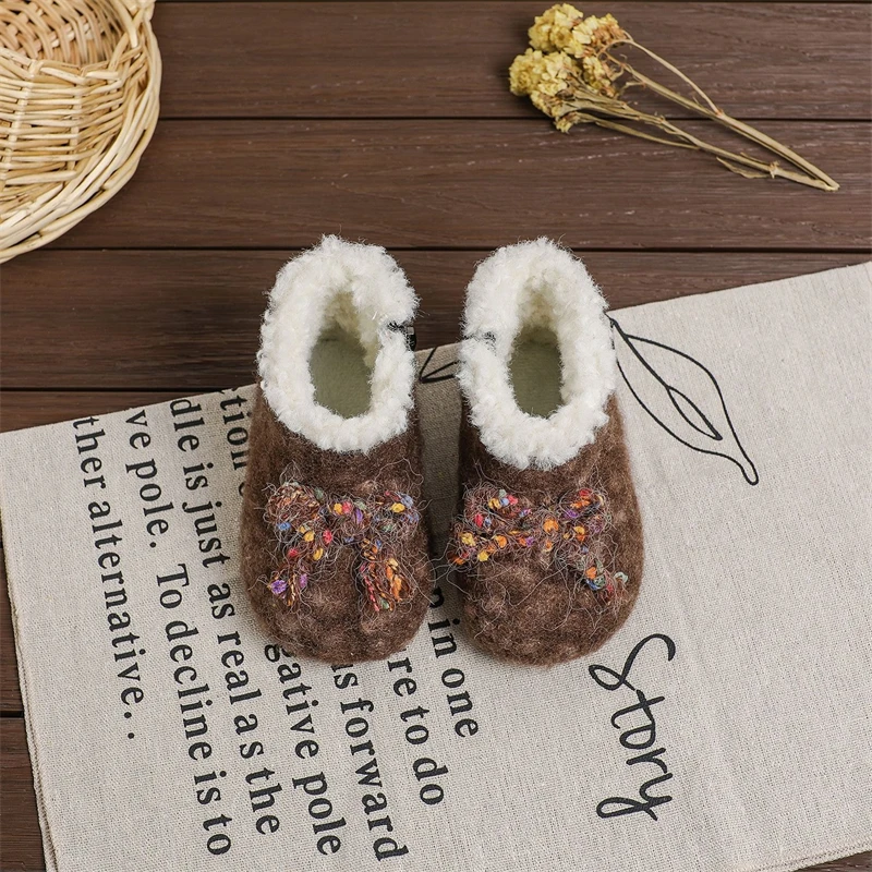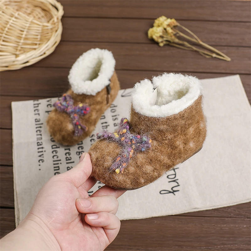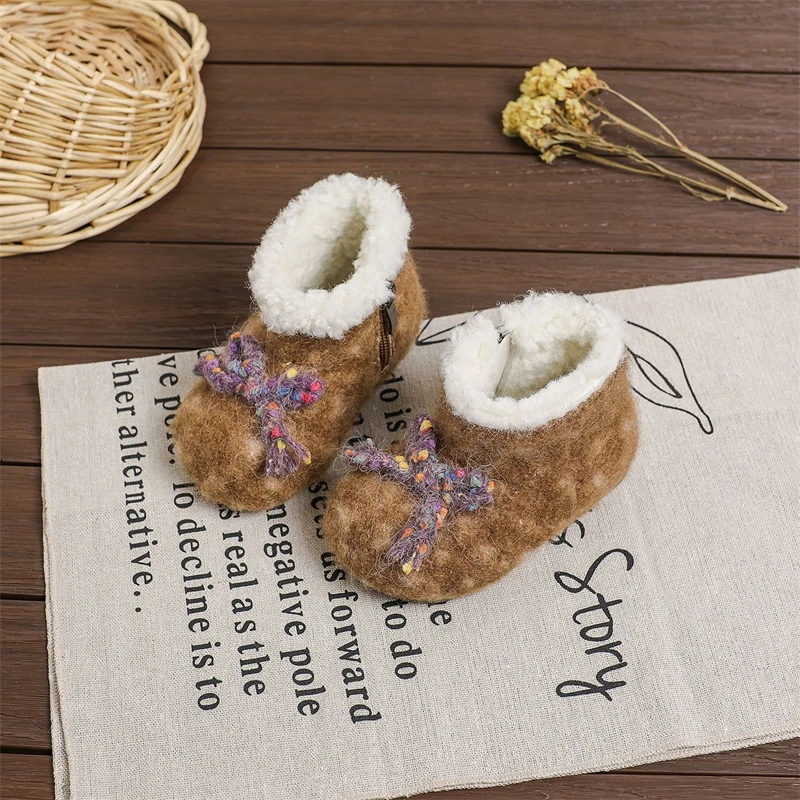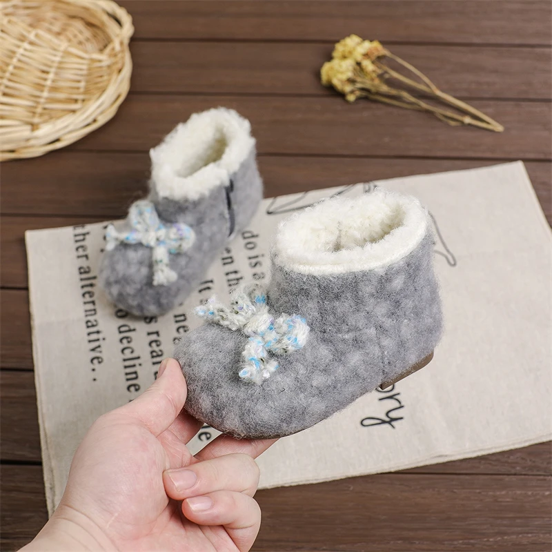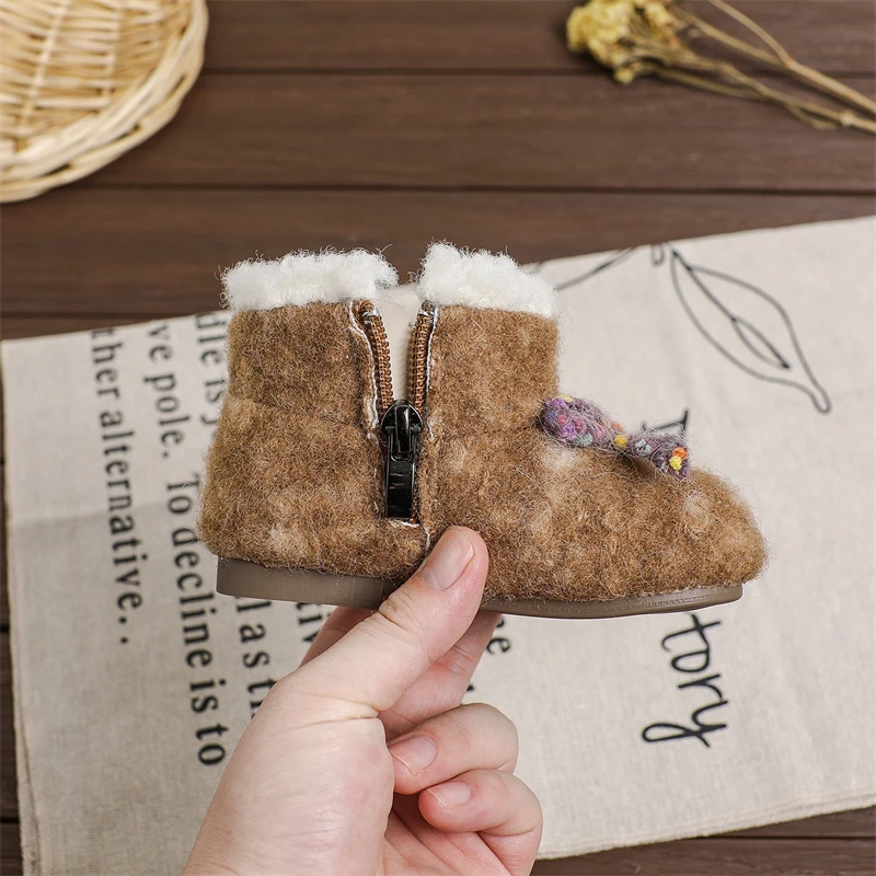 Otoño Invierno, botas de nieve para niñas, zapatos de princesa de felpa gruesa para exteriores, botas antideslizantes de suela suave para niños pequeños