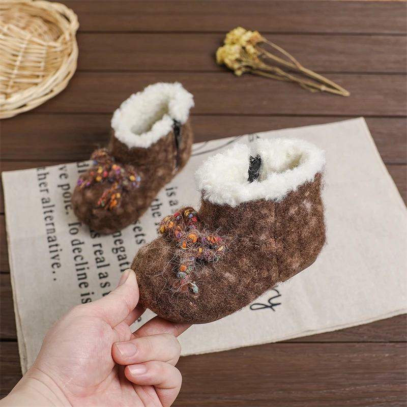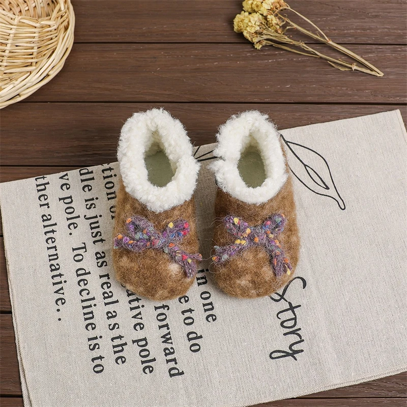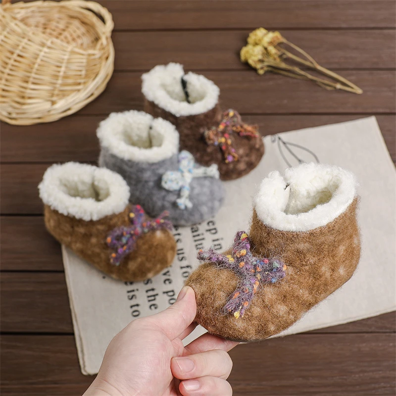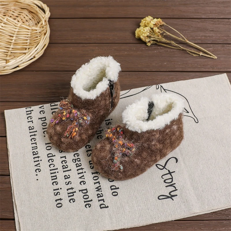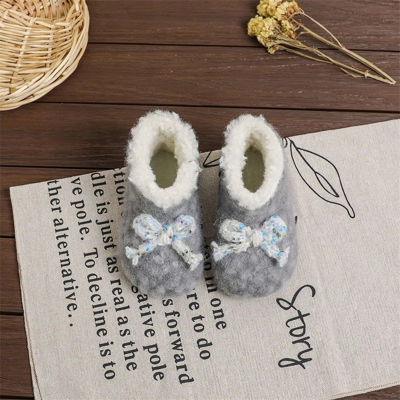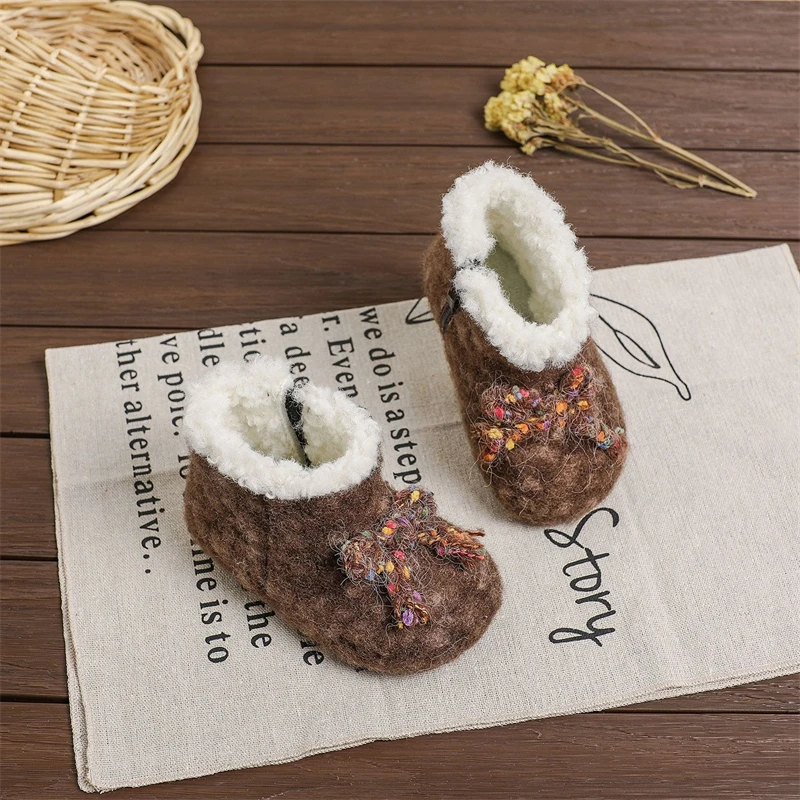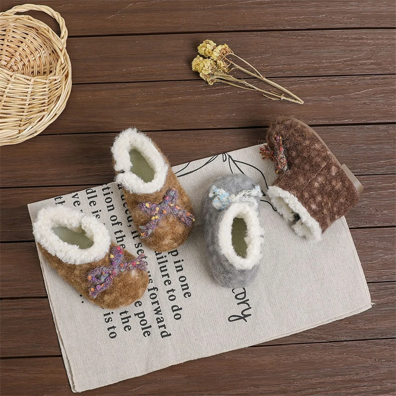 Otoño Invierno, botas de nieve para niñas, zapatos de princesa de felpa gruesa para exteriores, botas antideslizantes de suela suave para niños pequeños