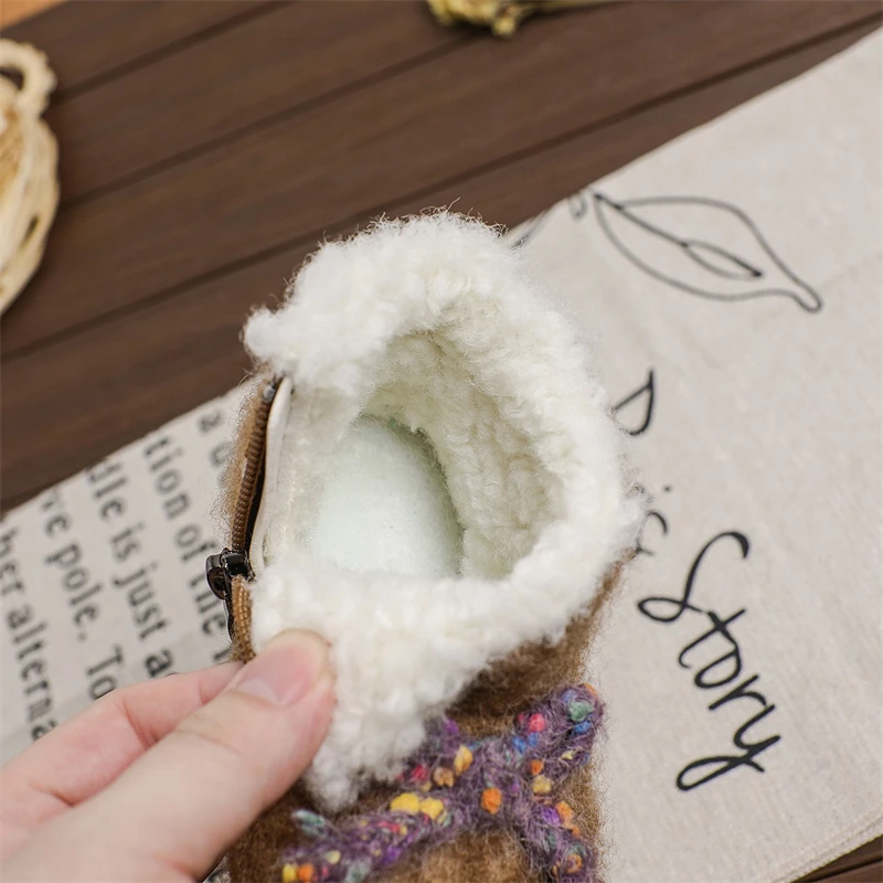 Otoño Invierno, botas de nieve para niñas, zapatos de princesa de felpa gruesa para exteriores, botas antideslizantes de suela suave para niños pequeños - imagen 3