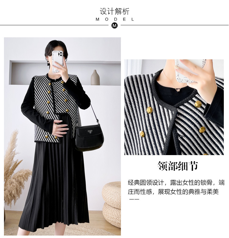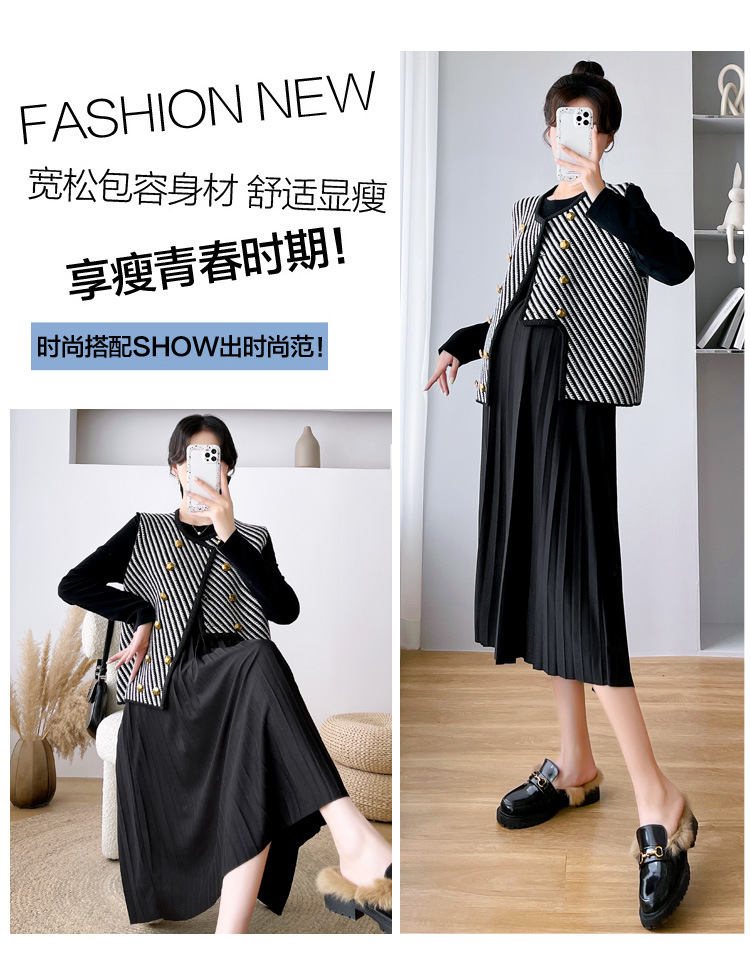 Otoño Invierno maternidad suéteres largos conjuntos de chaleco a rayas vestido grueso y cálido trajes ropa para mujeres embarazadas ropa de embarazo