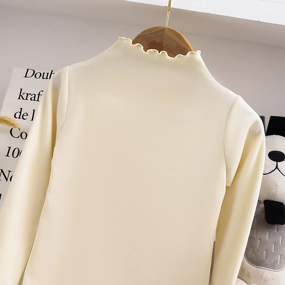 Nombre: Camiseta de manga larga para niña a la moda Otoño Invierno con bordes de volantes para niños, ropa informal suave y cálida de Color sólido para niños, Tops