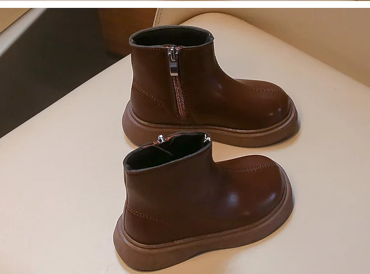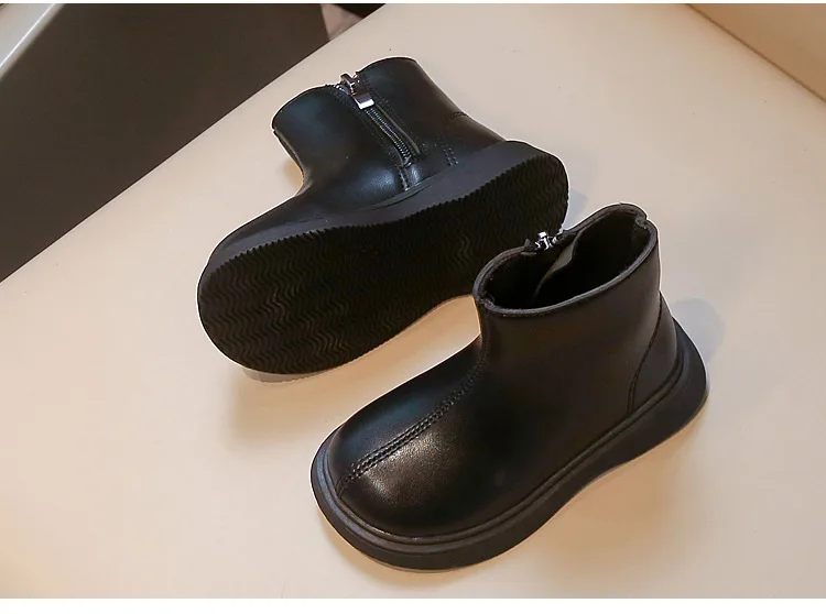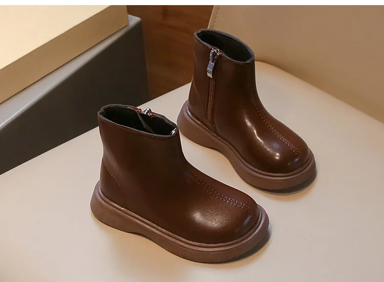 Otoño Invierno nuevo 2025 botas de moda para niños niñas impermeables antideslizantes sólido cremallera suela suave botas de cuero zapato Casual para niños
