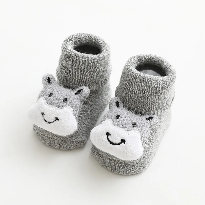 Comprar Otoño Invierno suave espesar algodón cálido calcetines para niñas recién nacidas Color sólido dibujos animados Animal muñeca infantil niño antideslizante calcetín de suelo