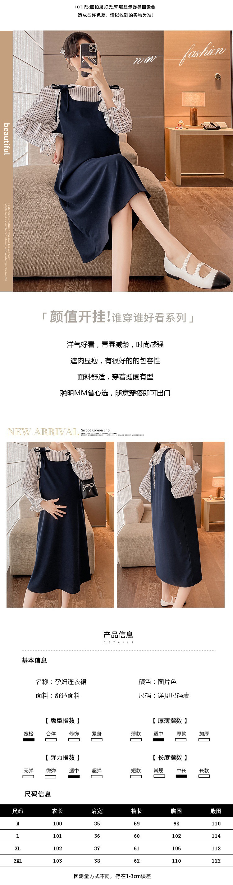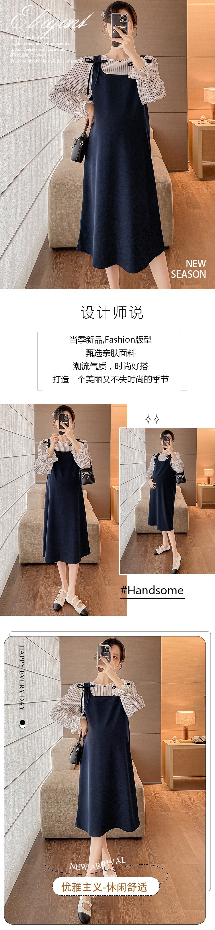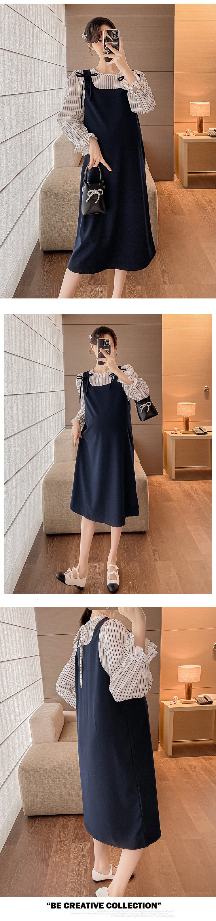Otoño largo mujeres embarazadas vestido plisado cuello Peter Pan manga larga botón mosca maternidad vestido de lactancia camisas de lactancia