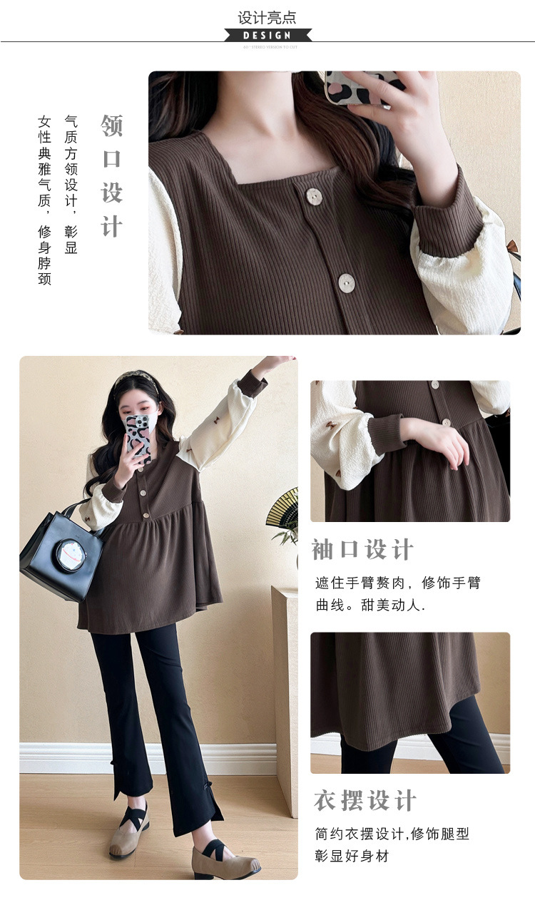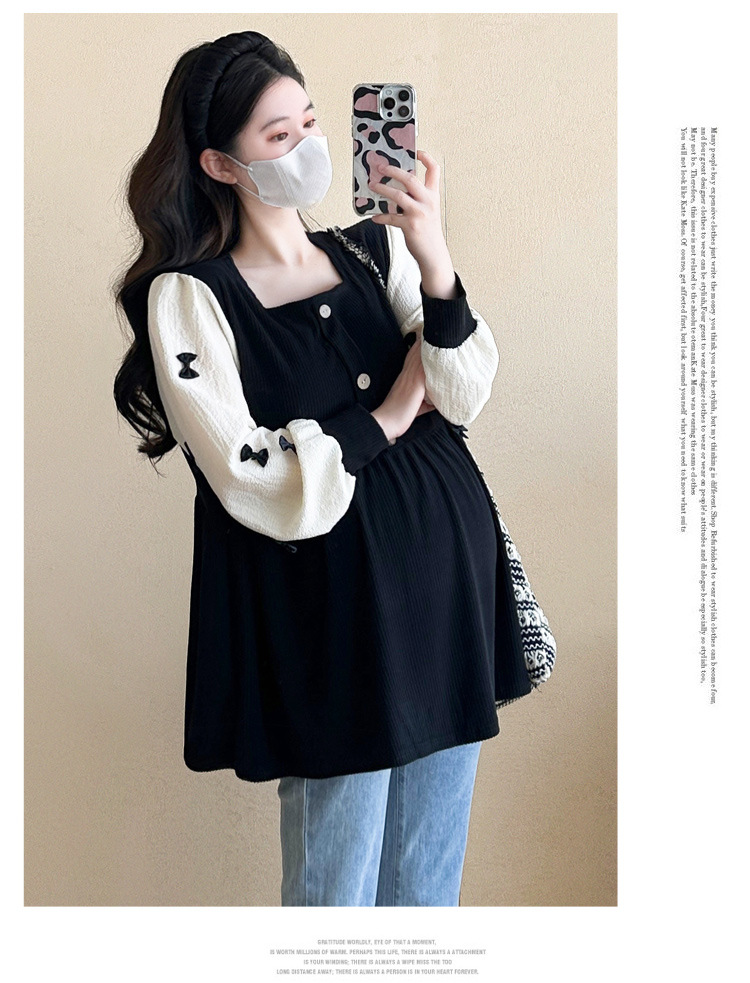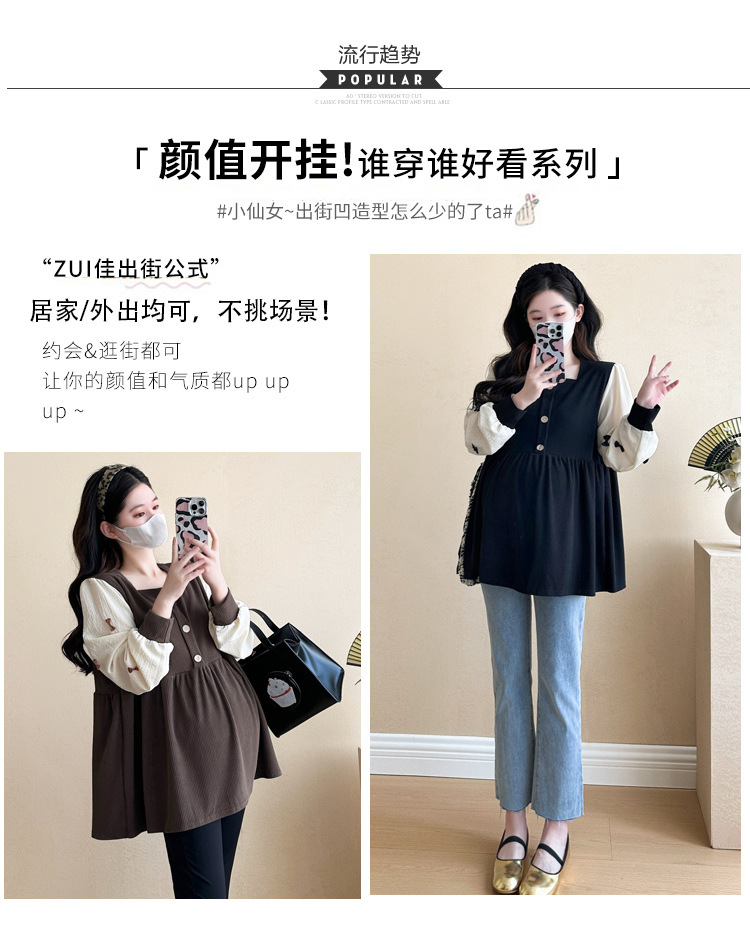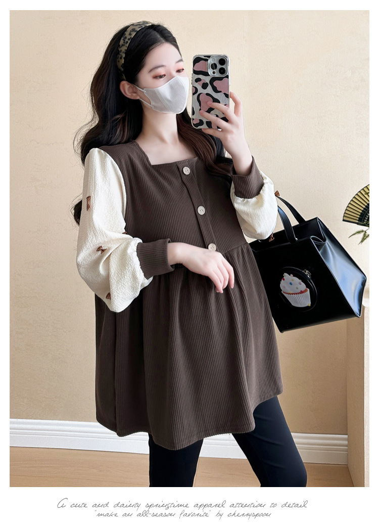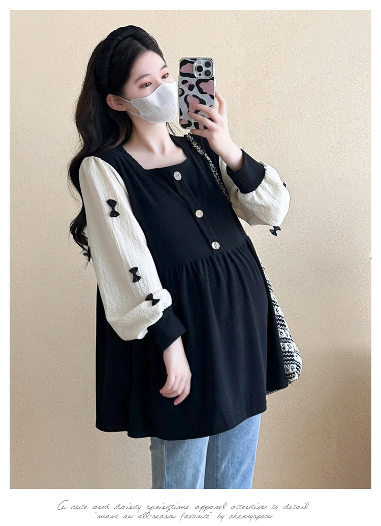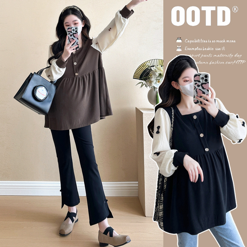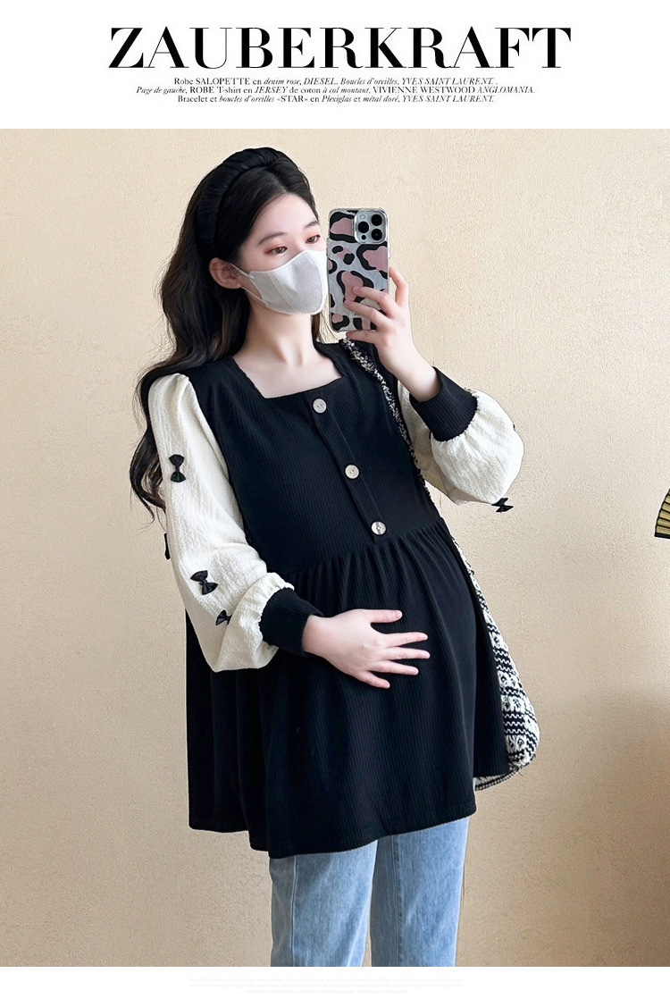 Otoño primavera moda Patchwork blusas de maternidad camisa suelta de moda ropa para mujeres embarazadas Chic Ins Tops de embarazo