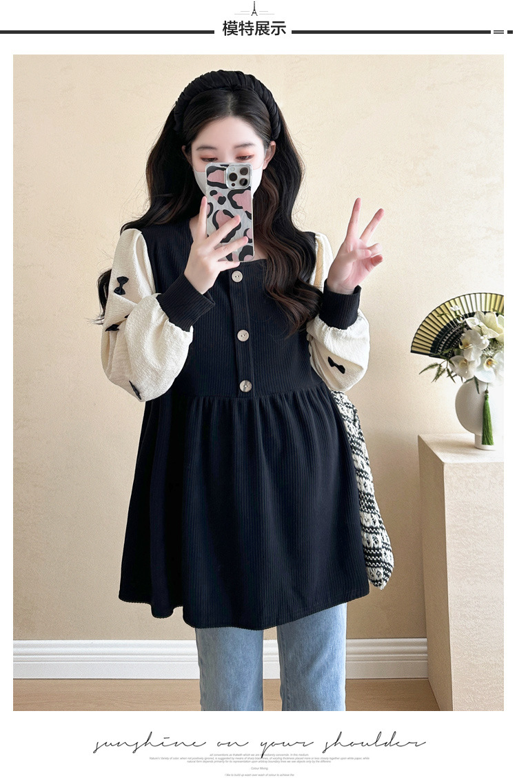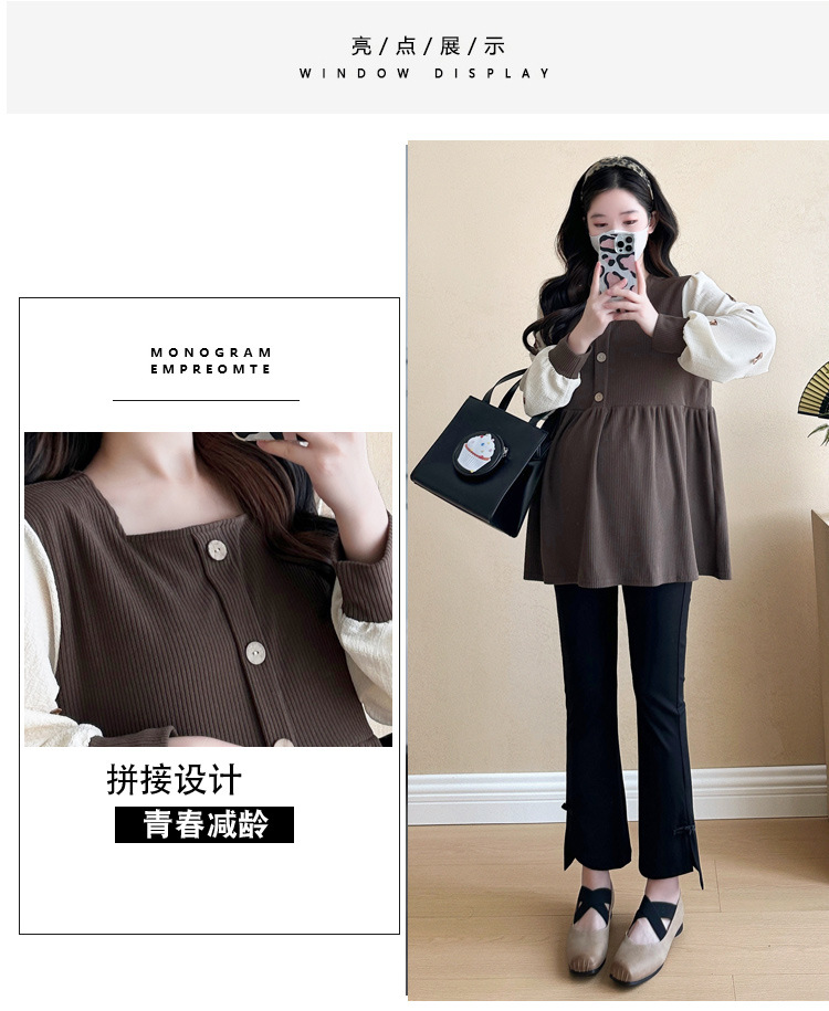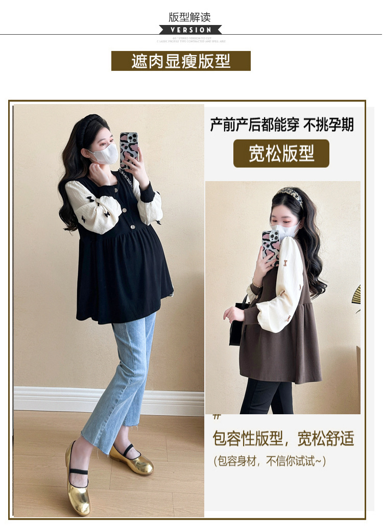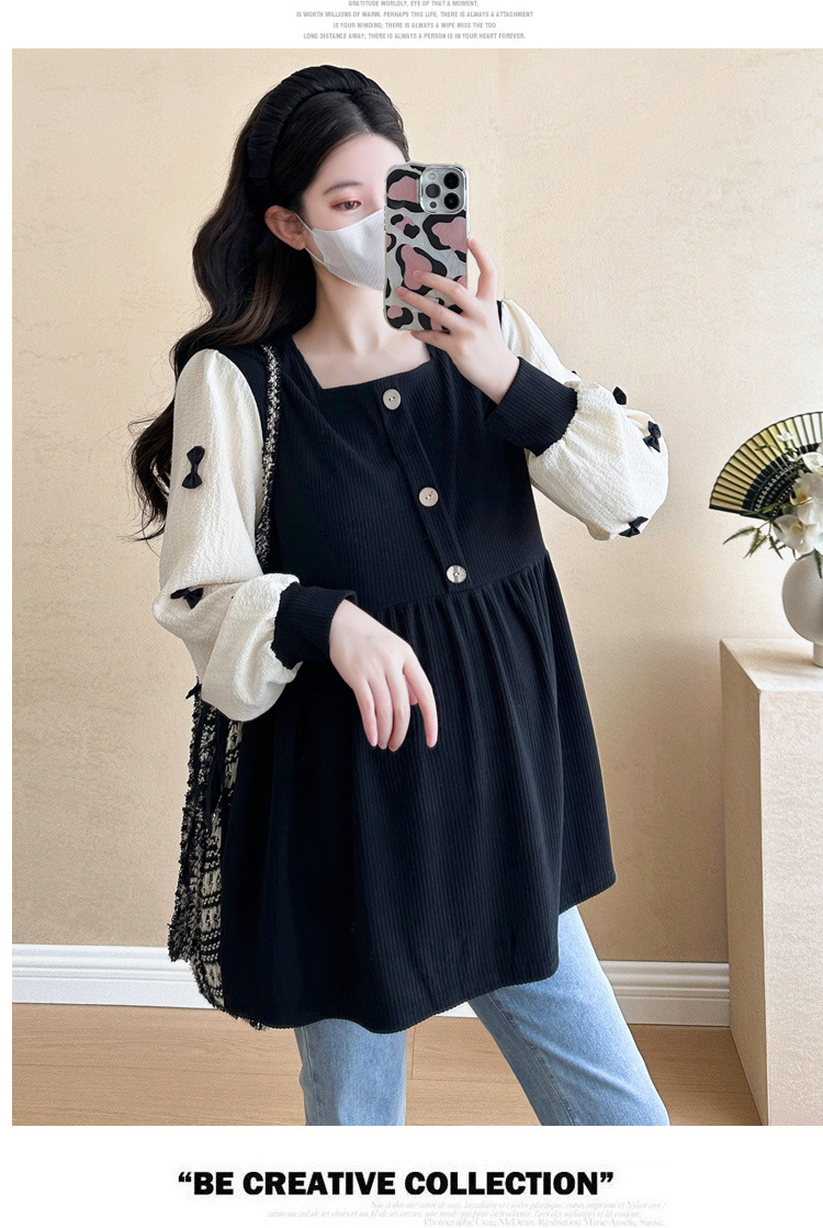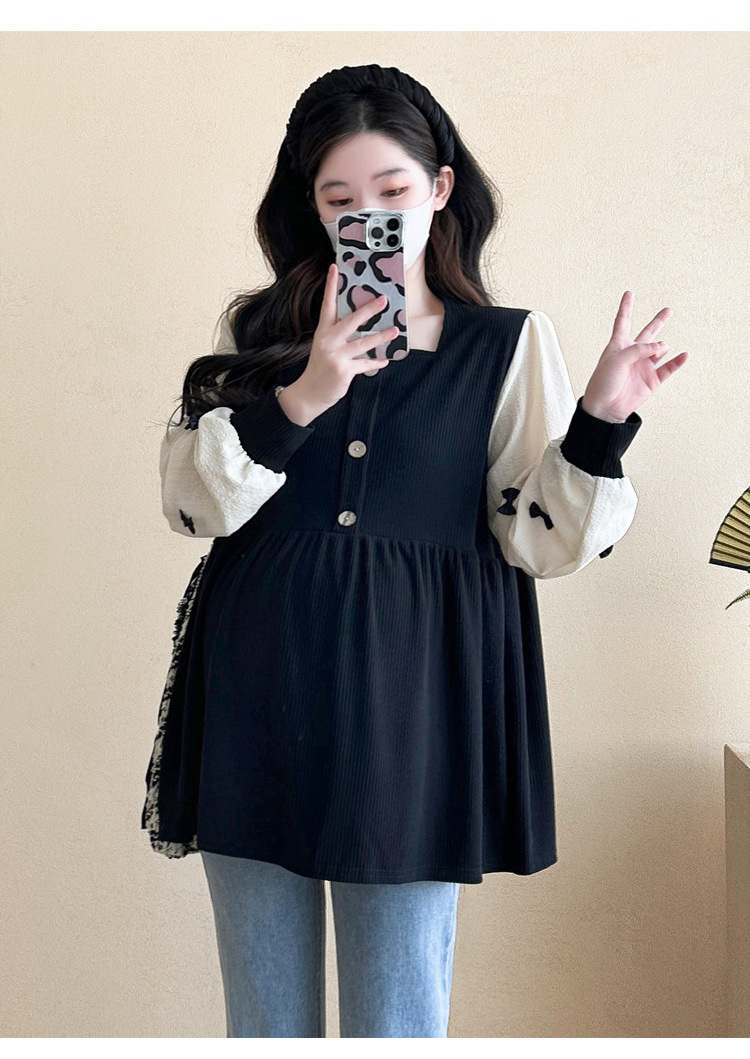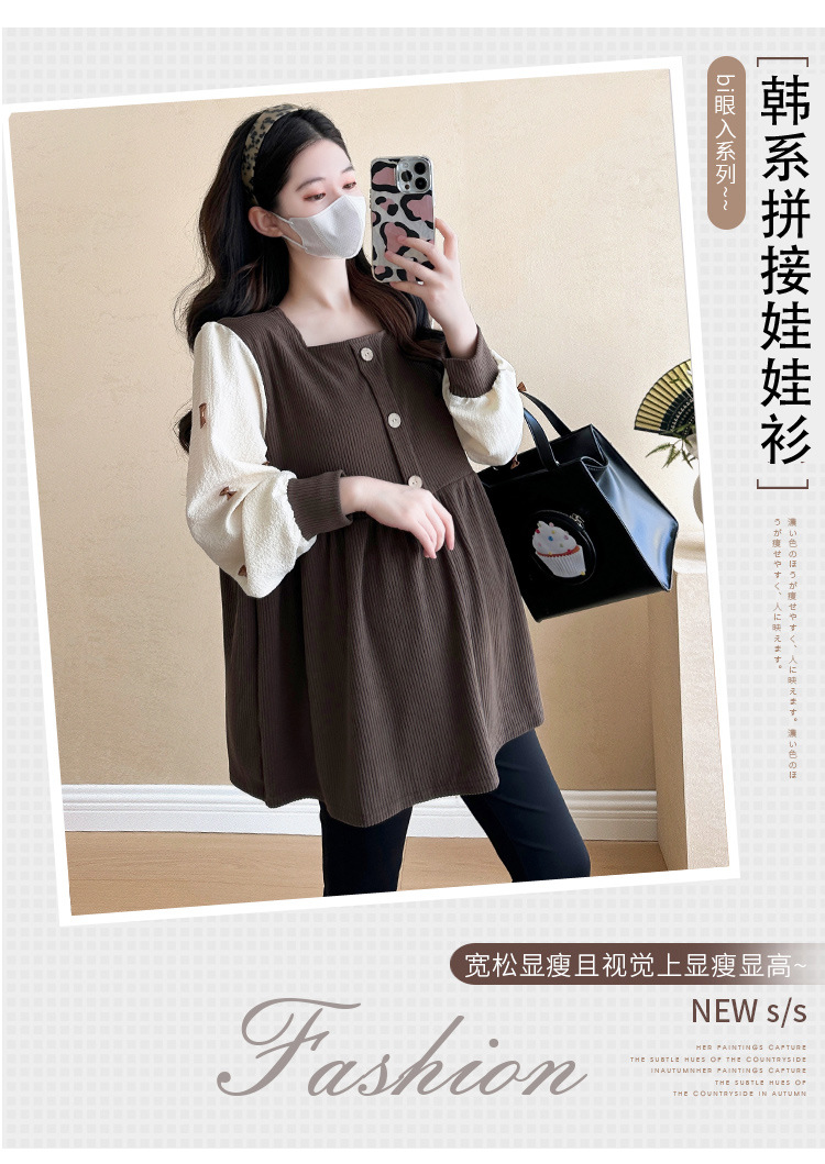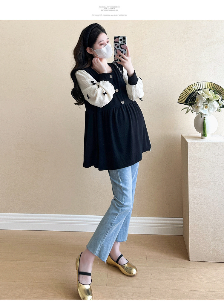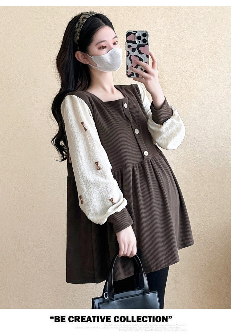 Otoño primavera moda Patchwork blusas de maternidad camisa suelta de moda ropa para mujeres embarazadas Chic Ins Tops de embarazo
