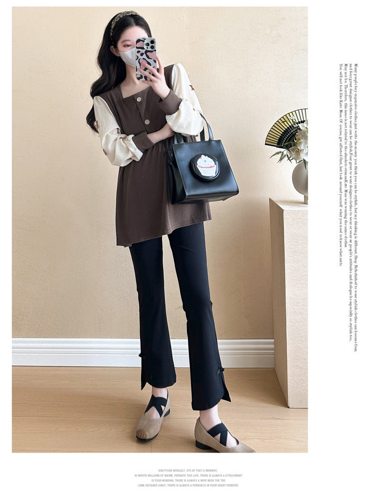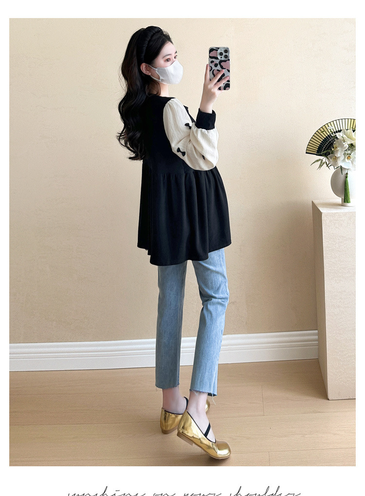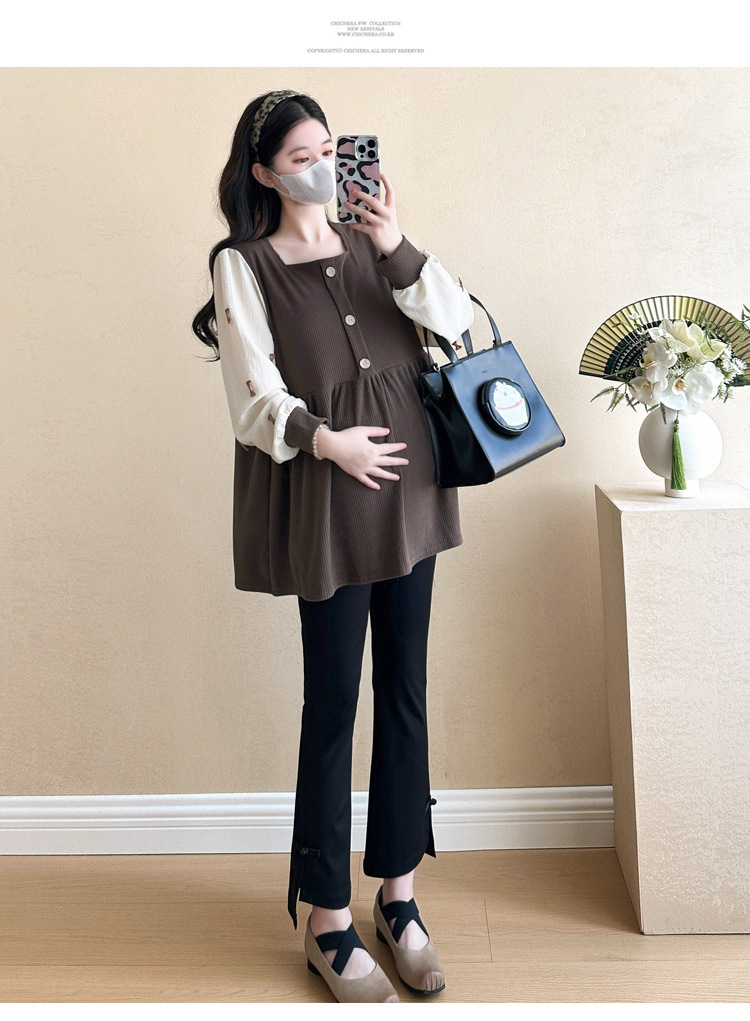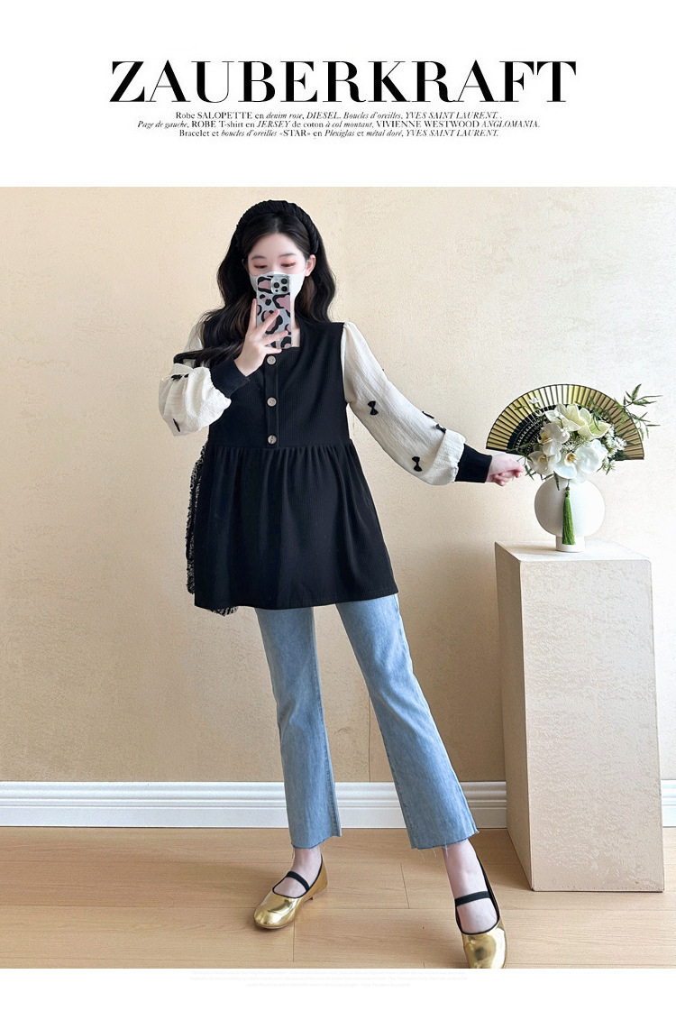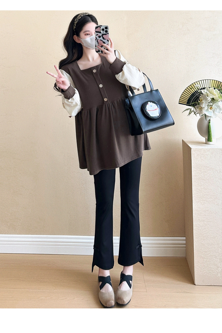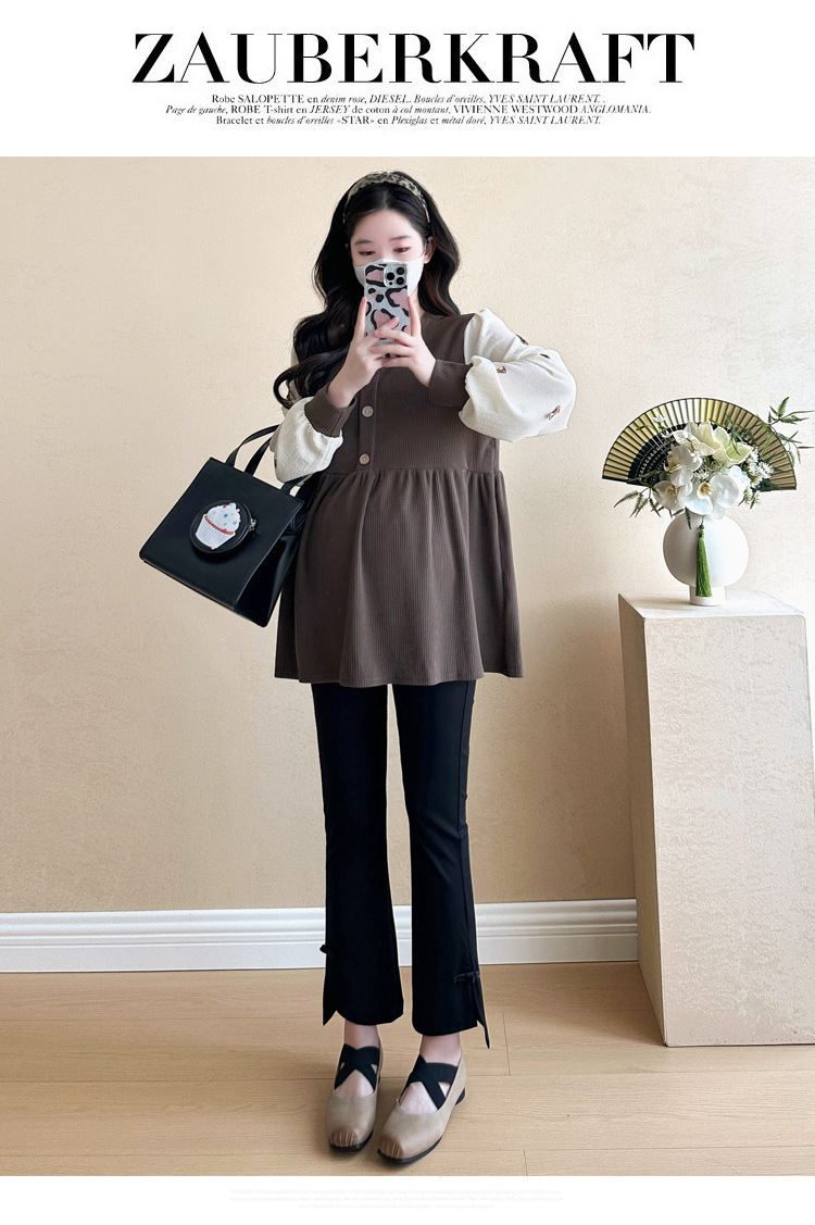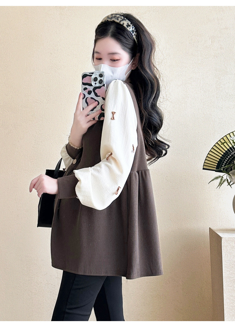 Otoño primavera moda Patchwork blusas de maternidad camisa suelta de moda ropa para mujeres embarazadas Chic Ins Tops de embarazo