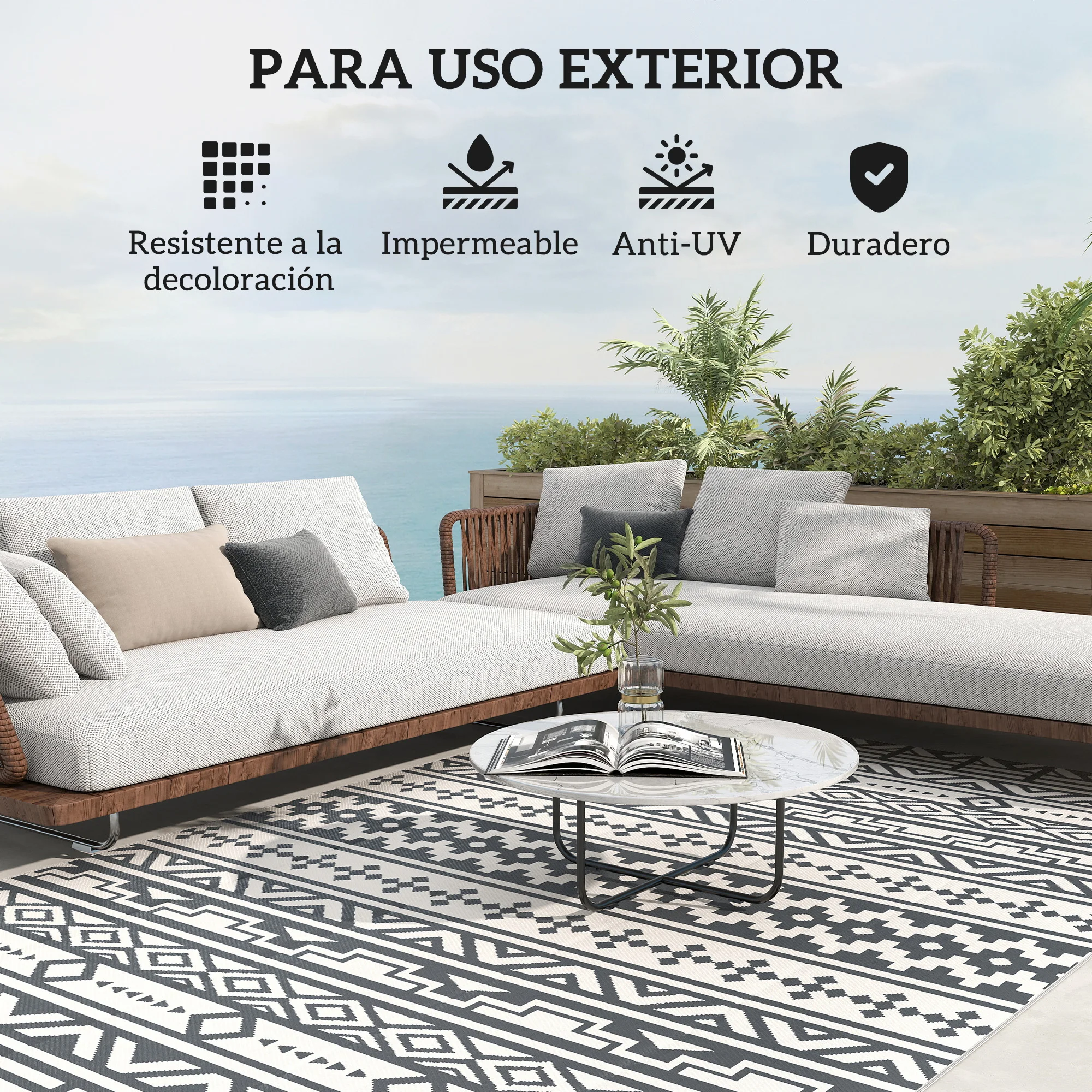 Esta alfombra de exterior de Outsunny es perfecta para usar donde quieras al aire libre. Ya sea para acampar, hacer pícnics, asistir a festivales o simplemente disfrutar en tu propio jardín, simplemente dóblala y llévala contigo. Su resistencia al agua y al desgarro la hace adecuada para su uso en exteriores. Además, esta alfombra de exterior es reversible, por lo que puedes duplicar su uso cuando un lado se ensucie. Incluye una bolsa de transporte para mantenerla segura durante tus viajes.