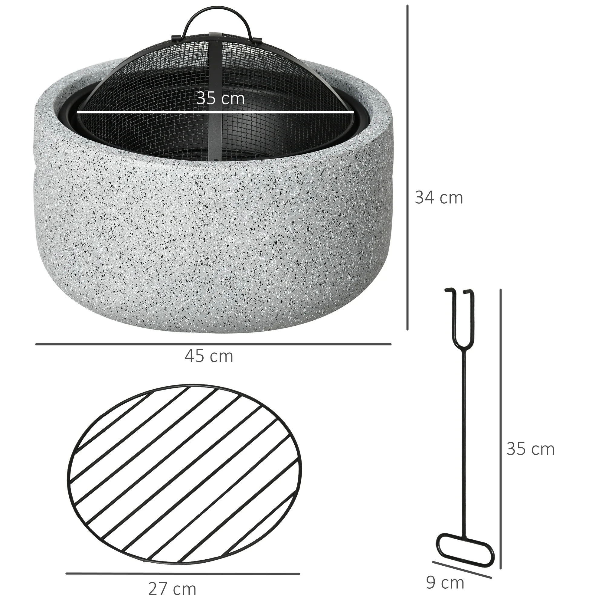 Outsunny Brasero Exterior Redondo Brasero Exterior Jardín con Atizador Protector de Chispas Rejilla y Manija Ø45x34 cm para Terraza Camping Fiesta Gris