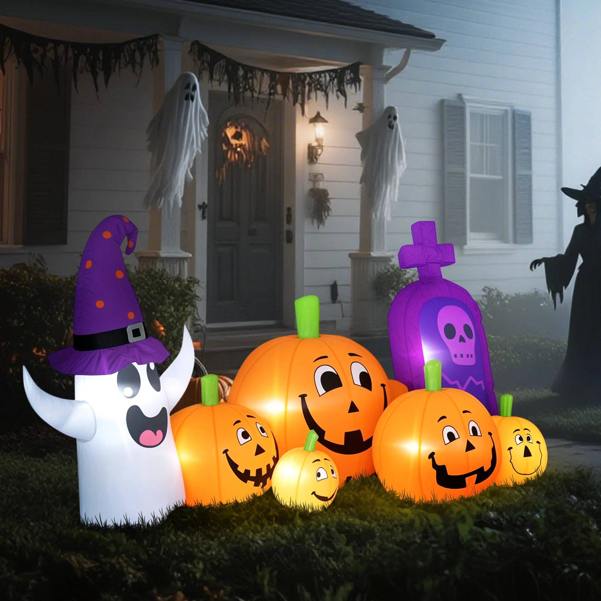 - La decoración de Halloween exterior tiene siete luces LED integradas y música incorporada para crear ambiente nocturno;