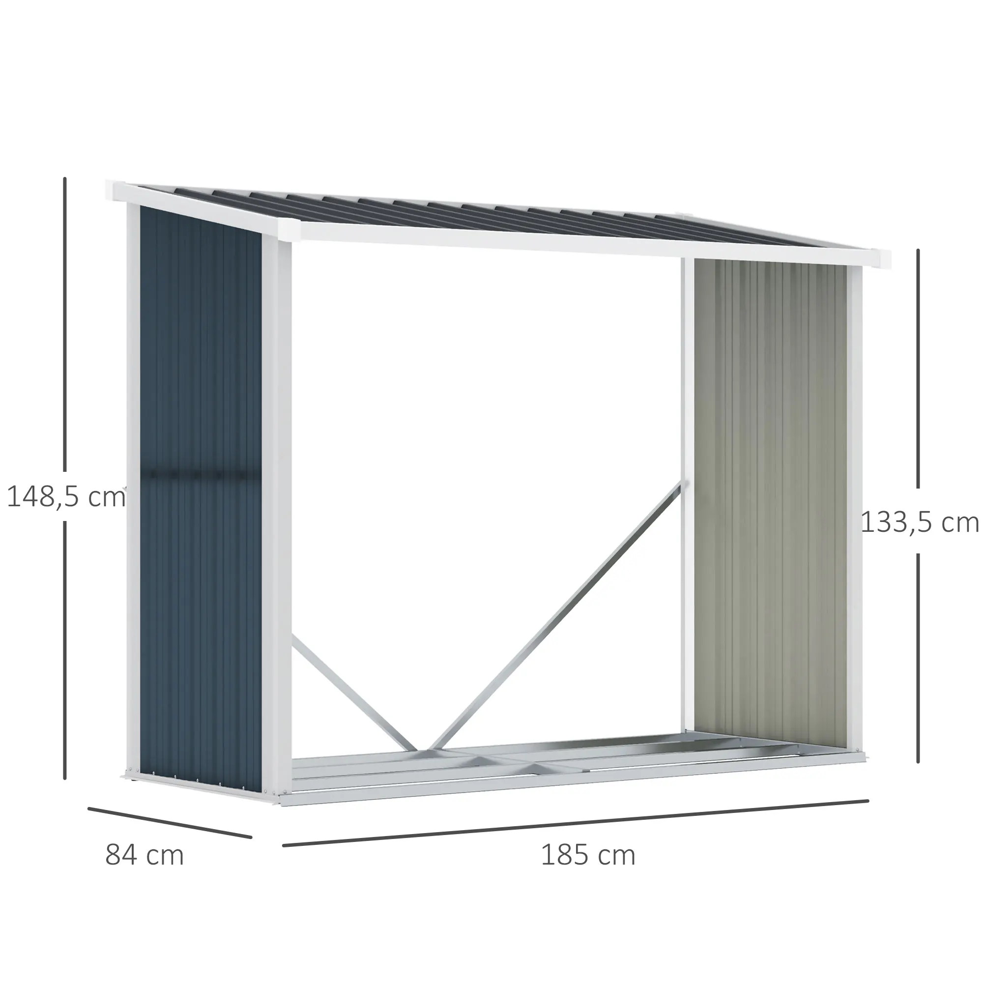 Comprar Outsunny Casetilla para Leña Acero Galvanizado Cobertizo Leñero de Almacenamiento de Troncos con Techo Inclinado para Jardín Terraza Exterior 185x84x133,5/148,5 cm Gris