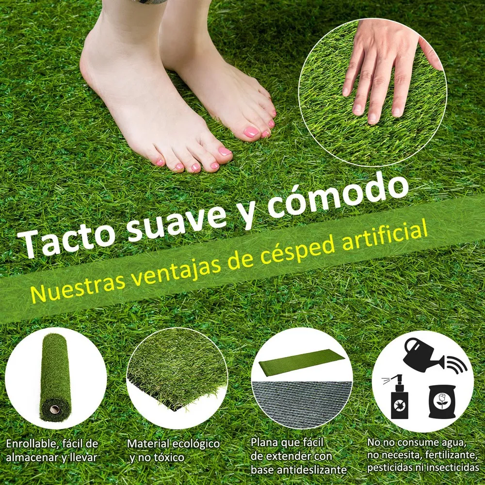 ¿Te cuesta mucho dinero y tiempo mantener tu césped? Pásate al césped artificial. Te permite disfrutar de los beneficios del césped natural pero ahorrando mucho trabajo y costes. Puedes tener tus espacios exteriores de color verde con una textura muy parecida al césped real. Los materiales son ecológicos y no tóxicos, de modo que es totalmente seguro para usarlo con niños y mascotas. Por lo tanto, es una gran solución para convertirse en la decoración perfecta para tu patio, terraza, jardín o cualquier otro espacio donde quieras darle un toque de verde. Crea un ambiente saludable y agradable sin esfuerzos de mantenimiento.