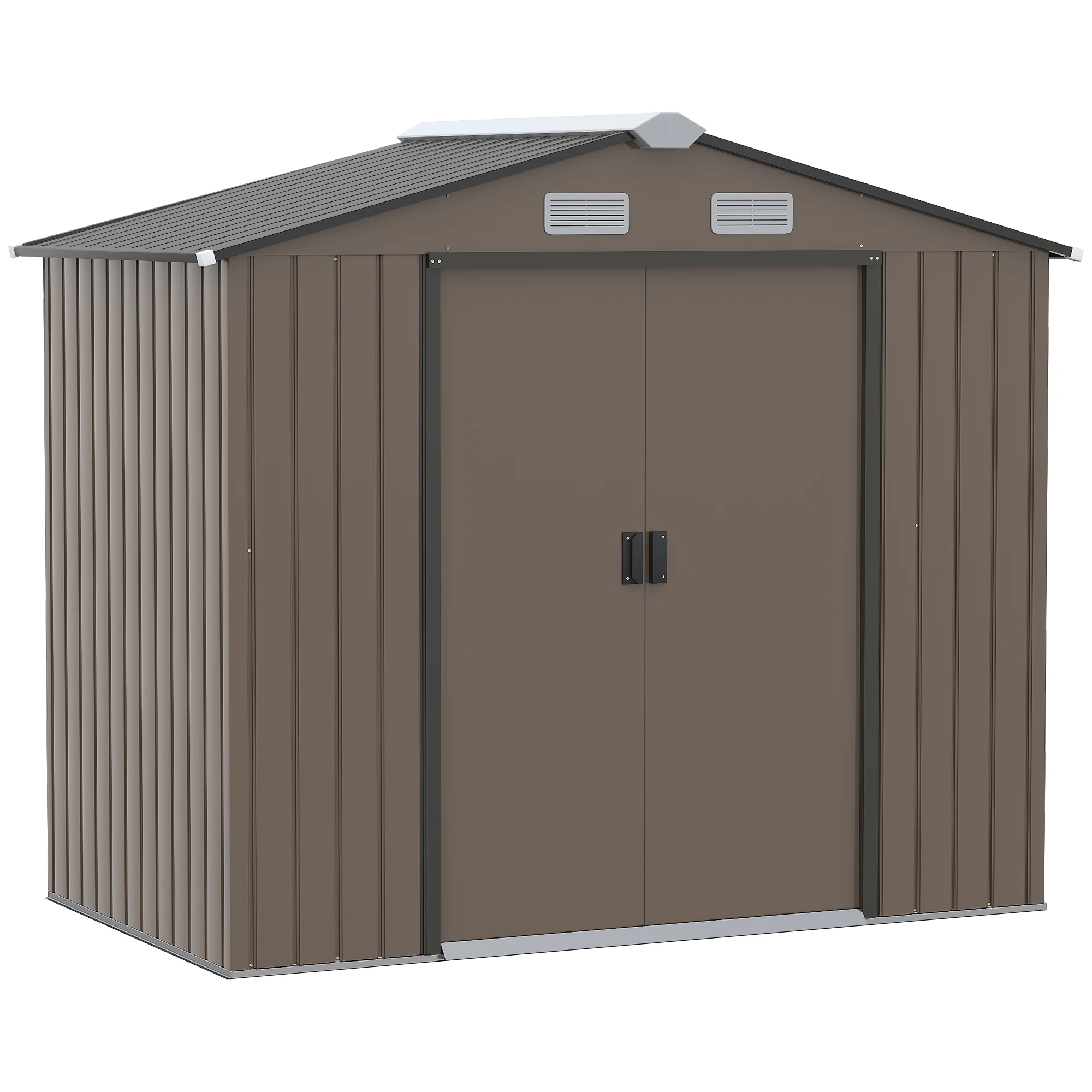 Comprar Outsunny Cobertizo de Jardín 2,5m² con Base de Refuerzo Sin Suelo 213x130x185 cm Caseta de Jardín Exterior con 2 Puertas Correderas y 4 Ventanas para Almacenamiento de Herramientas Marrón