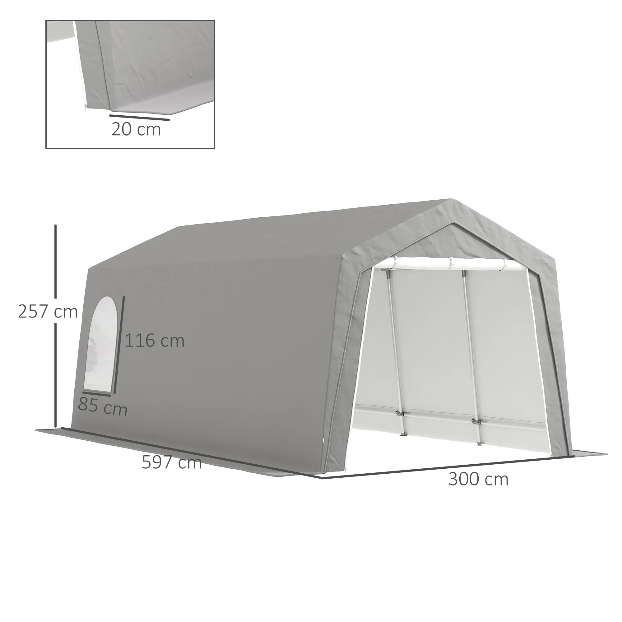 Comprar Outsunny Cobertizo Jardín Exterior 300x597x257 cm Carpa con Puerta Enrollable con Cremallera Impermeable Tienda de Almacenamiento en Garaje Exterior para Motos Bicicletas Herramientas de Jardín Gris