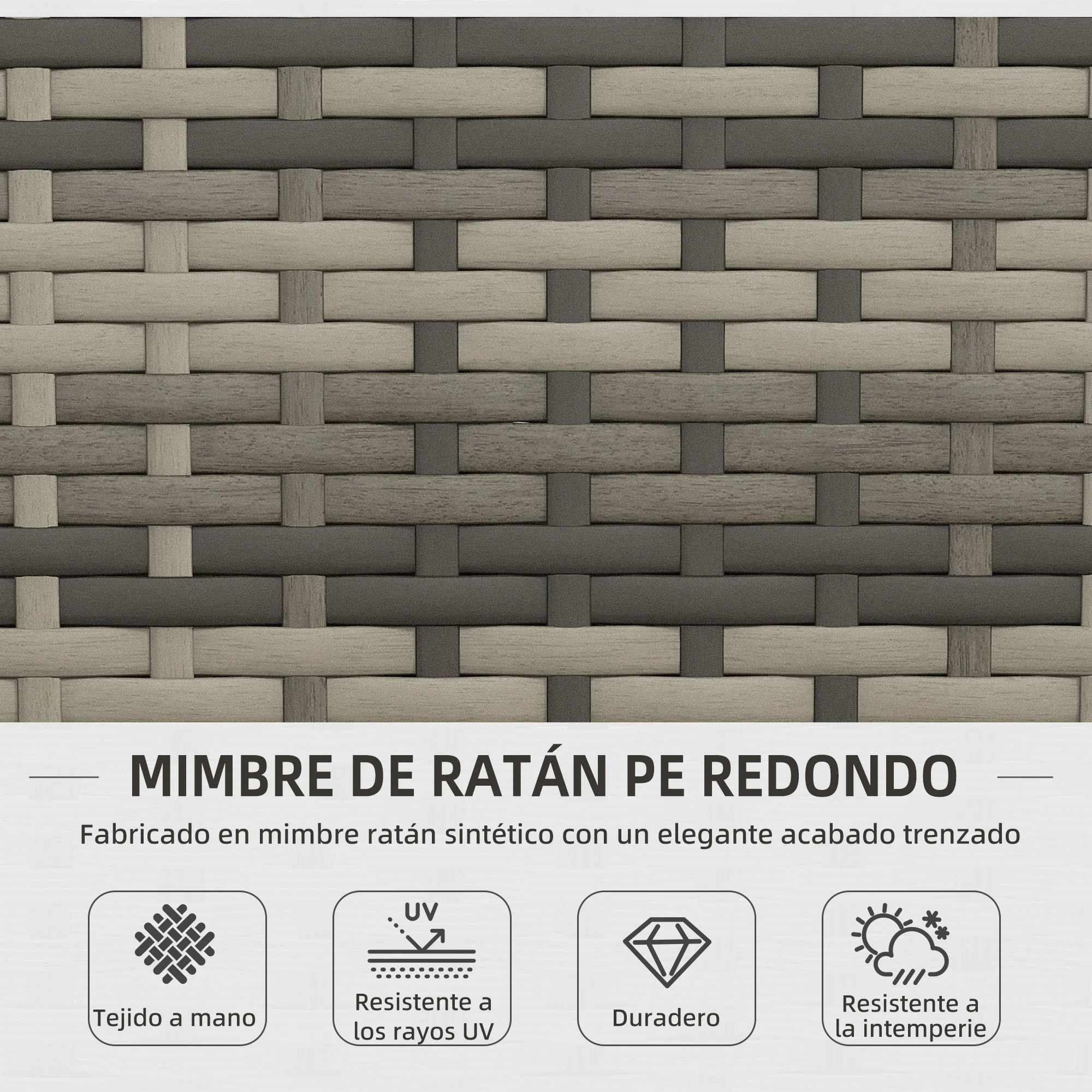 ● Material: acero, ratán PE, poliéster y vidrio templado