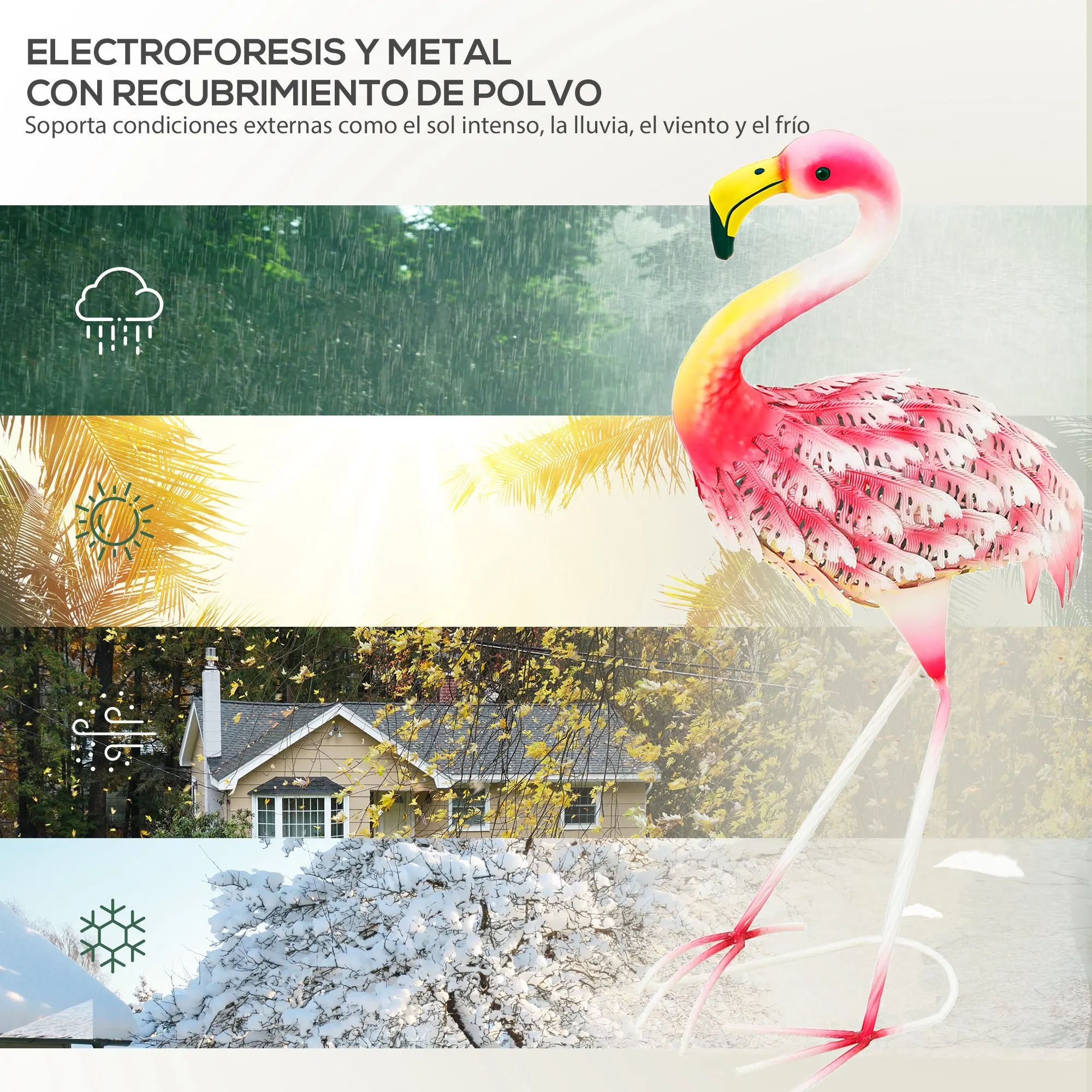 ● Material resistente a la intemperie, ideal para exteriores