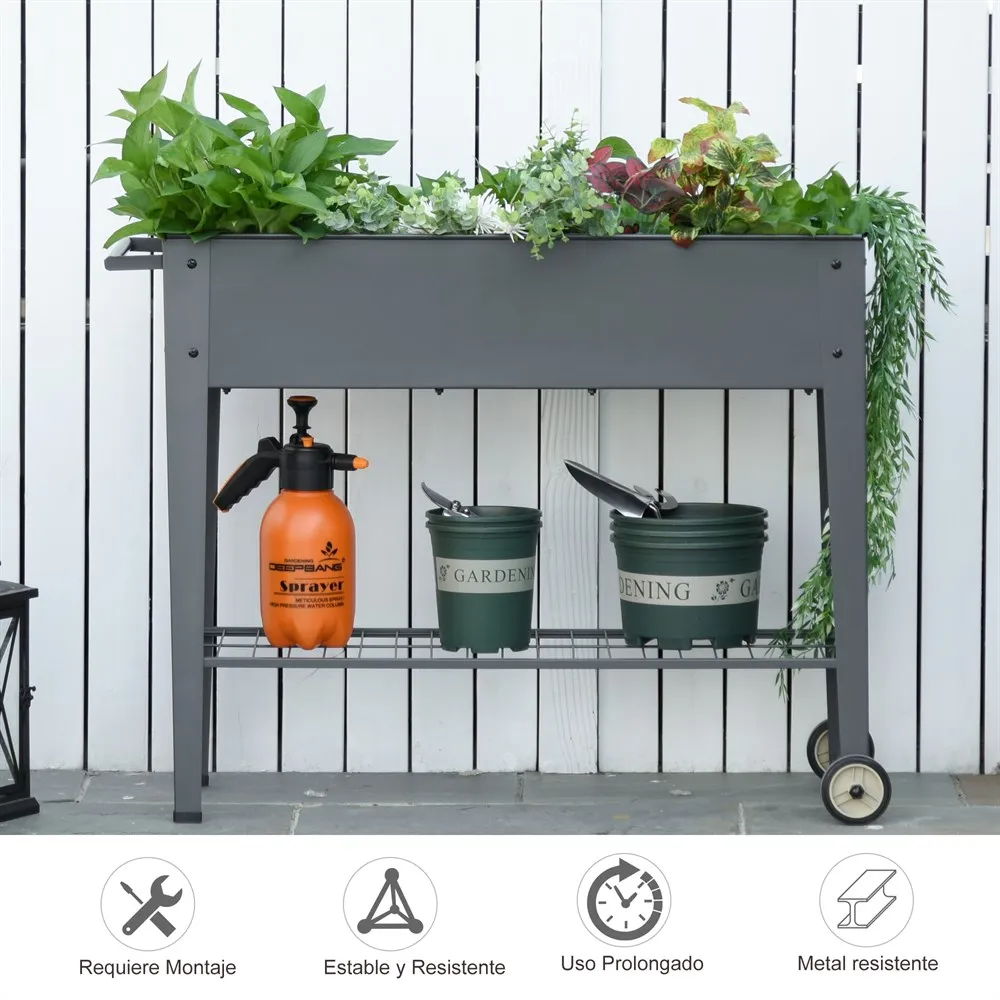¿Te aquejas de dolor de espalda y te encantas las plantas? Entonces esta jardinera elevada de Outsunny con ruedas es ideal para ti. Decorativa y a la vez pensada para facilitar su uso y transporte. Es ideal para evitar malas posturas. Tiene un estante inferior para poder tener todas las herramientas a mano y ruedas y un asa lateral para mover sin esfuerzo. Y no debes preocuparte por el exceso de agua y transpirabilidad de tus plantas ya que tiene un orificio de drenaje en la parte inferior.